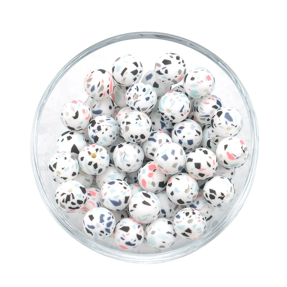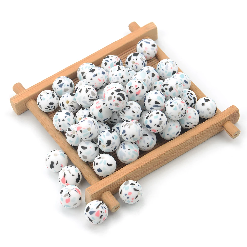 -Силиконовые бусины терраццо- Размер: 12 мм/15 мм/19 мм Количество: 100 шт. 100% пищевая слайкон 100% новый 100% без BPA, фталатов, свинца и ПВХ. -Советы по очистке- Перед использованием протрите горячим полотенцем.