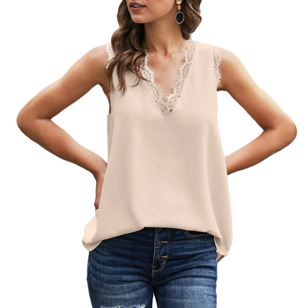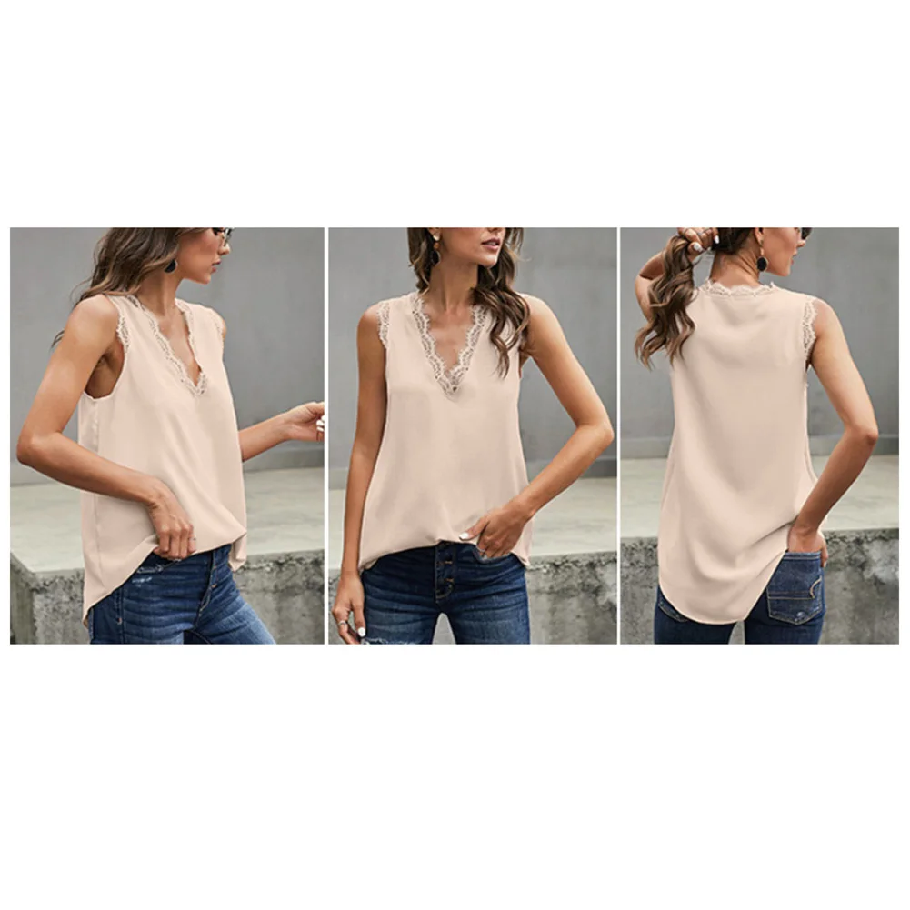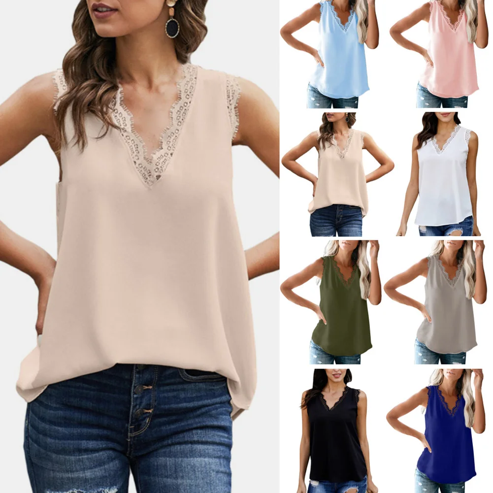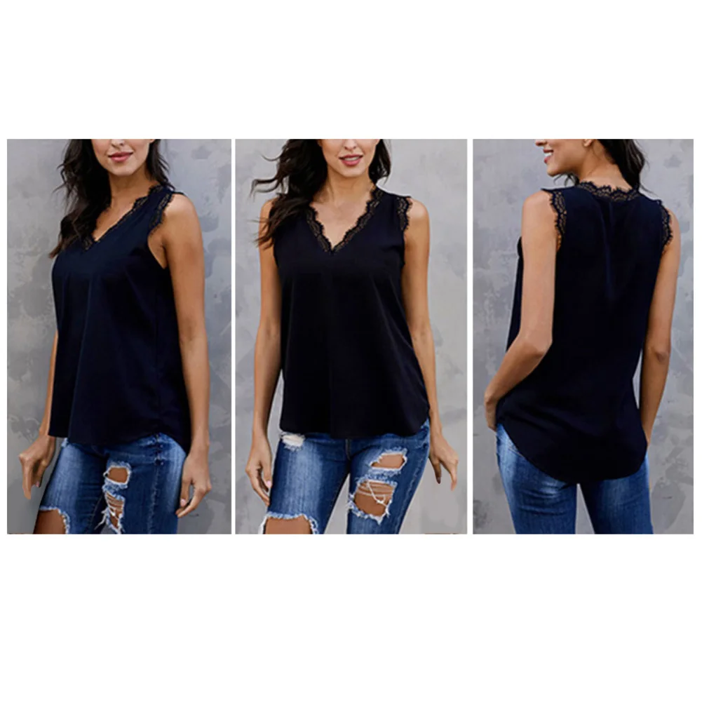 Большой размер женский стильный однотонный кружевной жилет без рукавов с v-образным вырезом свободный топ на бретелях