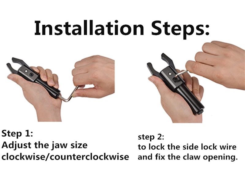1. Установите Съемник на станке. 2. Выровняйте центр тяги к центру стержня. 3 Регулировка: Отрегулируйте Съемник с помощью внутреннего шестигранного ключа, размер отверстия На 1 мм меньше, чем на планке. 4. Установка завершена, начать работу!