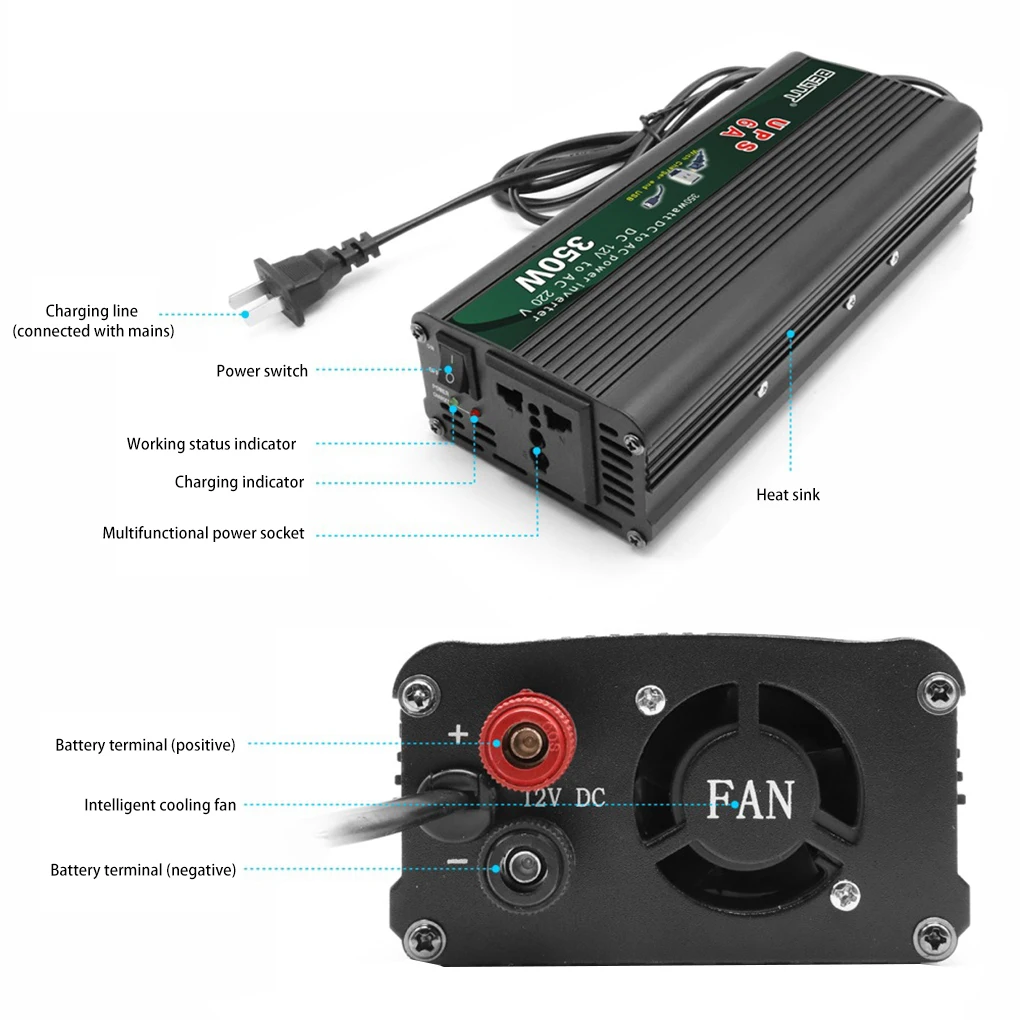 350 Вт автомобильный инвертор постоянного тока 12 В в переменный ток 220 В авто Инвертор адаптер зарядное устройство трансформатор напряжения пиковая мощность 700 Вт