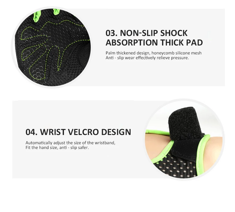 Профессиональные перчатки для тренажерного зала, для фитнеса, для силового подъема, для женщин и мужчин, для тренировок, бодибилдинга, Нескользящие перчатки с полупальцами, для защиты рук Особенности: 1. Легкие спортивные перчатки изготовлены из высококачественной Сверхлегкой микрофибры. Дышащие сетки и вентиляционные отверстия на спине сохраняют ваши руки сухими. Крошечные отверстия между пальцами улучшат воздухопроницаемость перчаток. 2. Высококачественная перчатка для тяжелой атлетики покрывает всю ладонь, а большой палец вашей руки также защищен. 3. Дизайн ладони из неопрена с силиконовым принтом, обеспечивающий более сильное сцепление с штангой, гантелей, Тяжелая атлетика, Тяговая планка, мышцы вверх кольца, чайник колокольчики, и так далее. 4. Это обеспечивает гораздо лучшее сцепление, чем традиционные кожаные пальмовые перчатки. Больше нет рваных рук и больше мозолей. Характеристики: Материал: Сверхлегкий полиэстер Подходит для занятий фитнесом, тяжелой атлетикой, велоспортом, бегом и т. д. Вес: около 52 г за пару Цвет: розовый/черный/серый/зеленый (Есть 2 стиля в виде ладони, сот и точек) Размер: S/M/XL/XXL S ---- ширина ладони 7,5 см, круг руки 16-17 см M ---- ширина ладони 8 см, круг руки 18-19 см L ---- ширина ладони 8,5 см, круг руки 20-21 см XL ---- ширина ладони 9 см, круг руки 22-23 см Если вы не уверены в размере, пожалуйста, свяжитесь с нами. Комплектация: 1 пара перчаток для фитнеса Примечание: Фактический цвет может немного отличаться от изображения из-за различных мониторов и светового эффекта. Возможны отклонения на 1-3 см вследствие измерений вручную.
