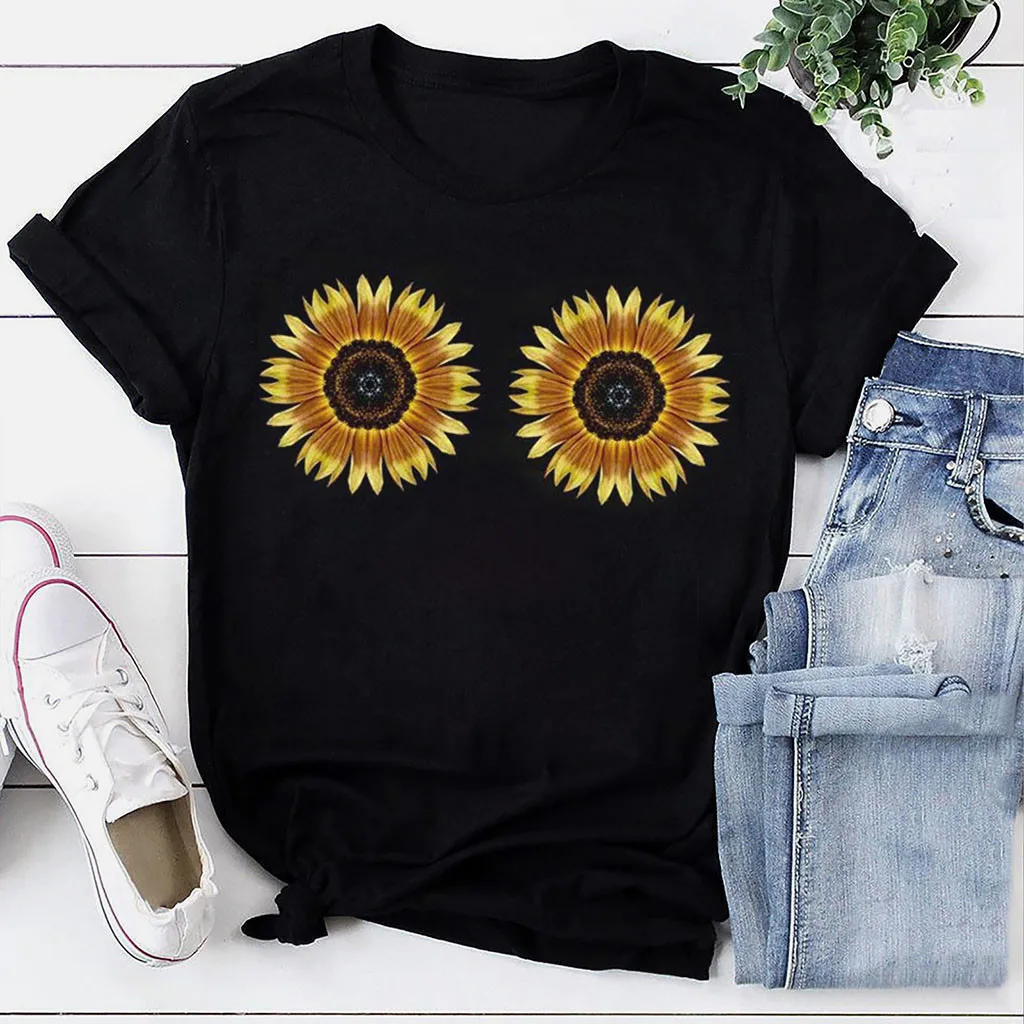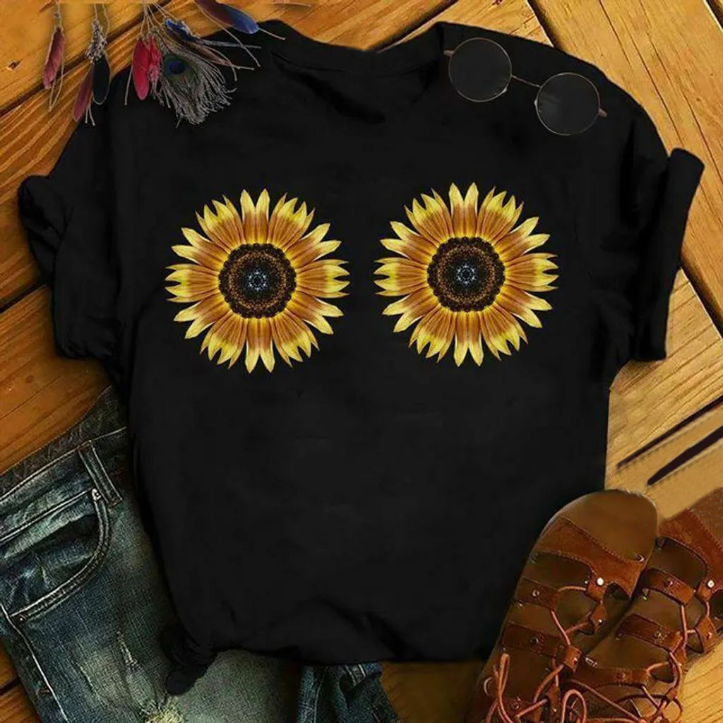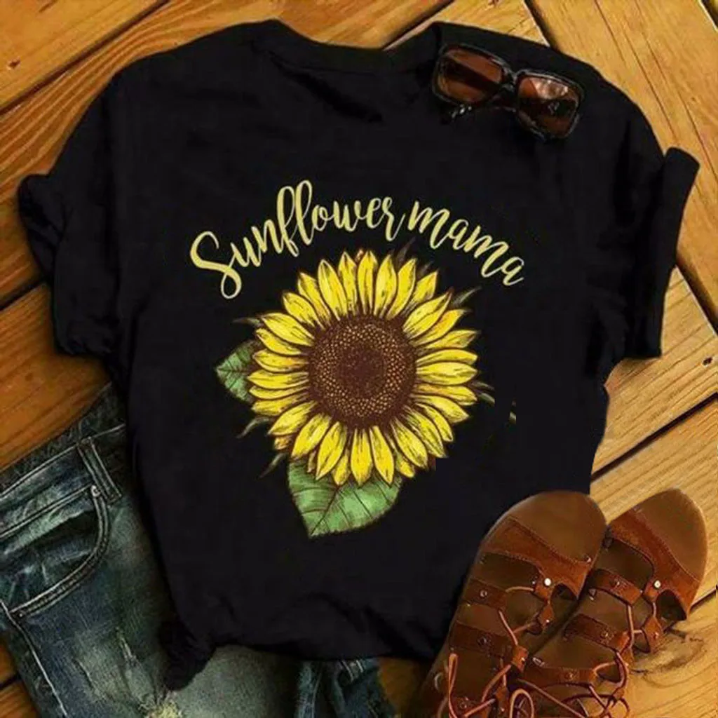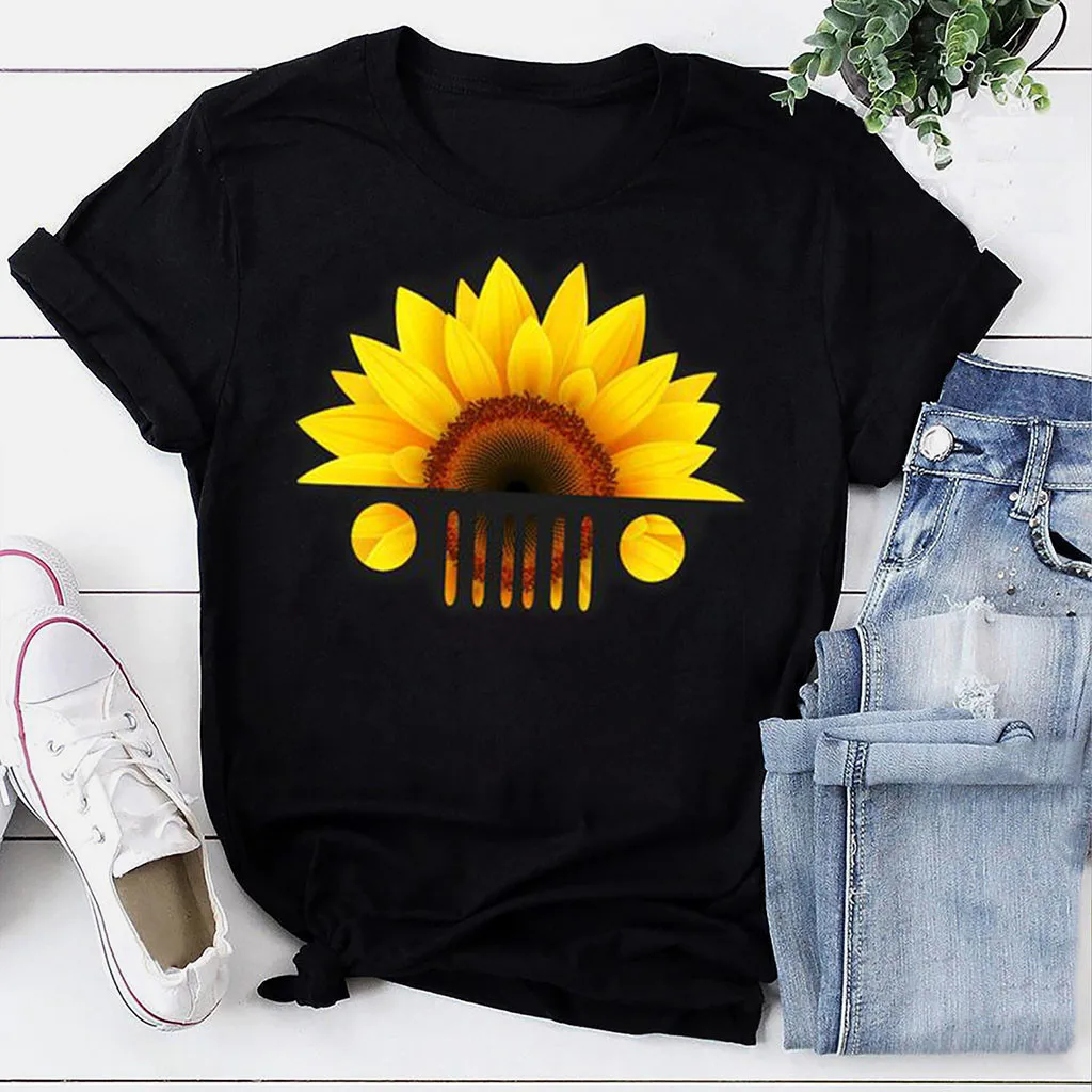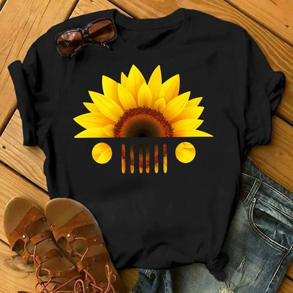 Женская футболка с принтом подсолнуха кота, повседневные футболки с коротким рукавом