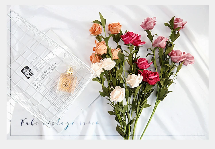 INS стиль искусственные Винтажные розы украшение стола цветы для косметики вино фото фон фотография, фото
