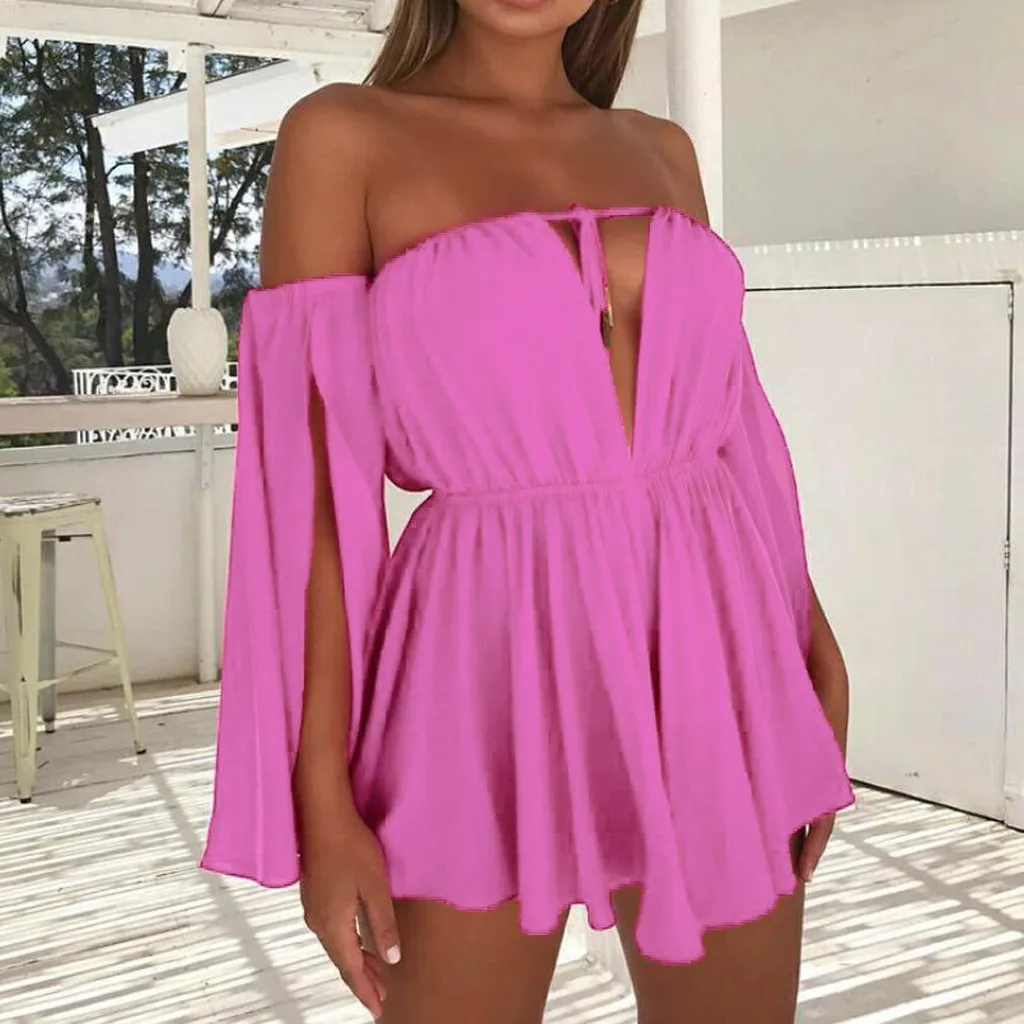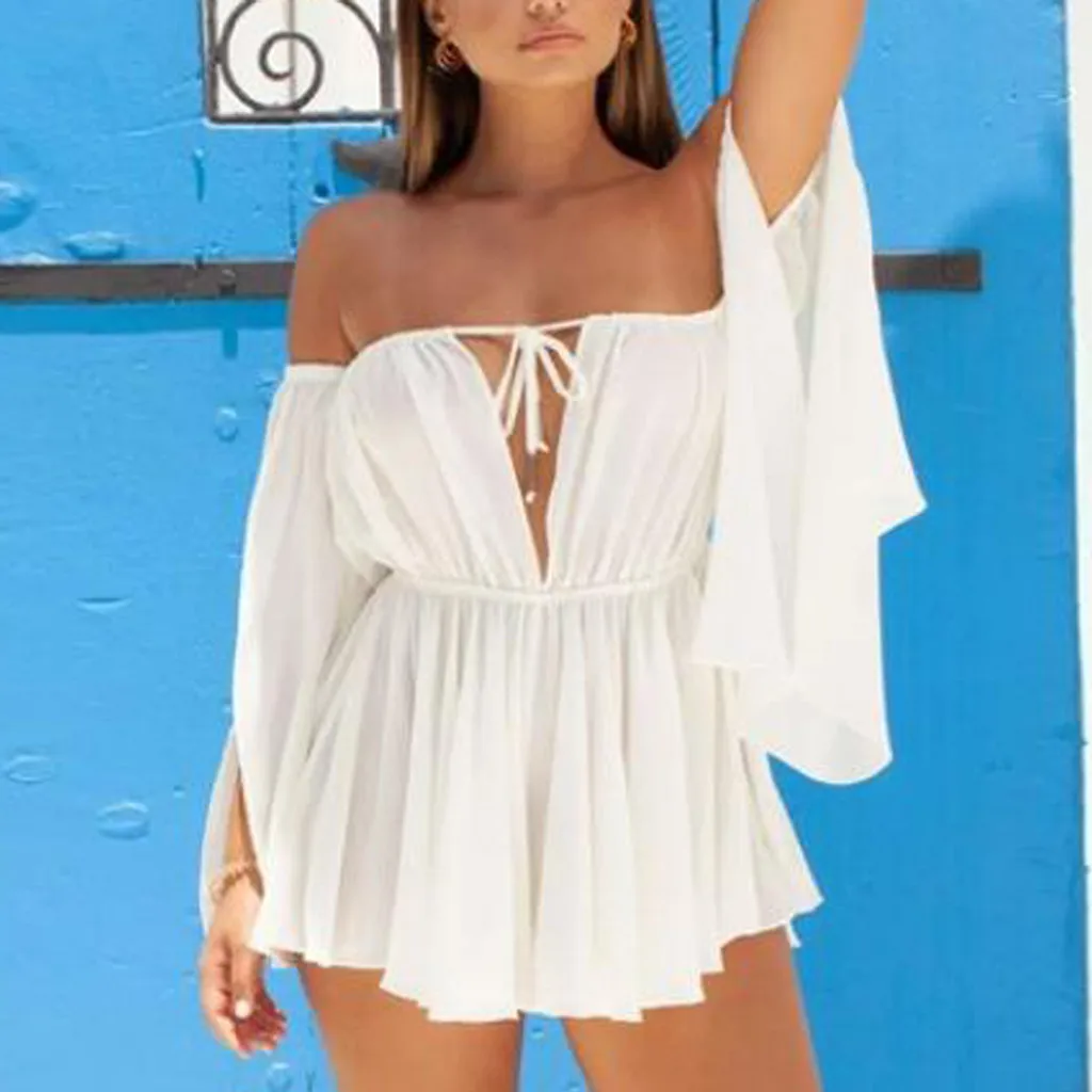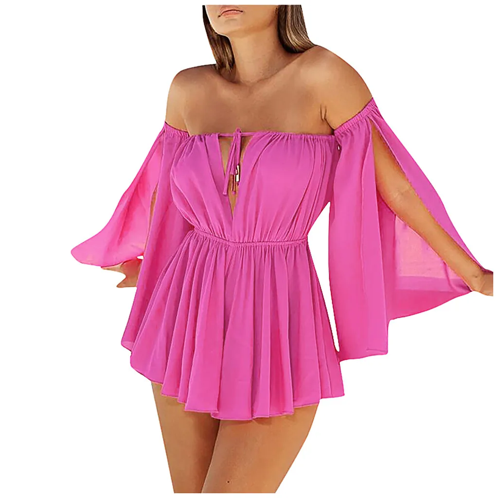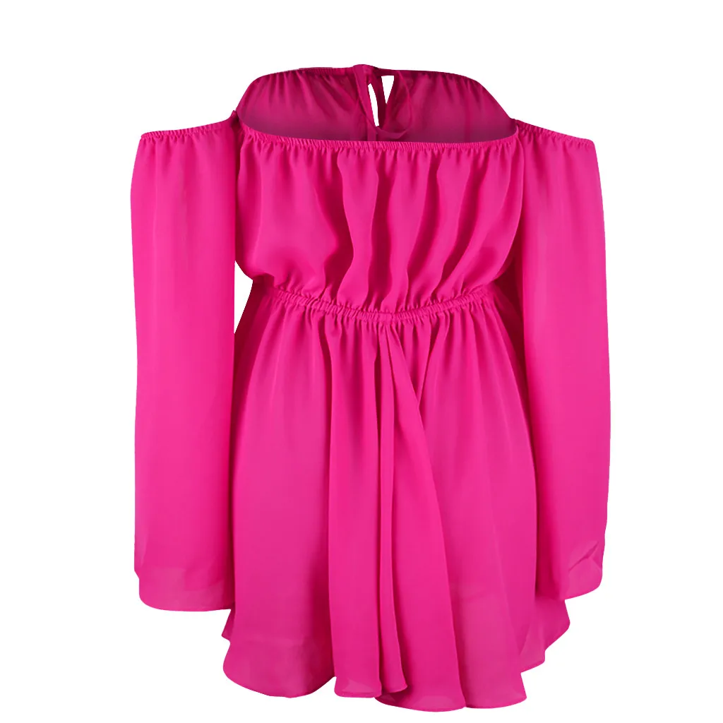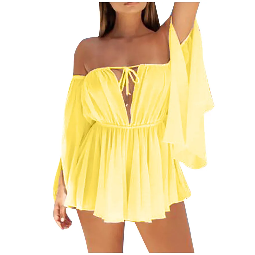 Модное женское сексуальное шифоновое однотонное мини-платье со шнуровкой и длинным рукавом