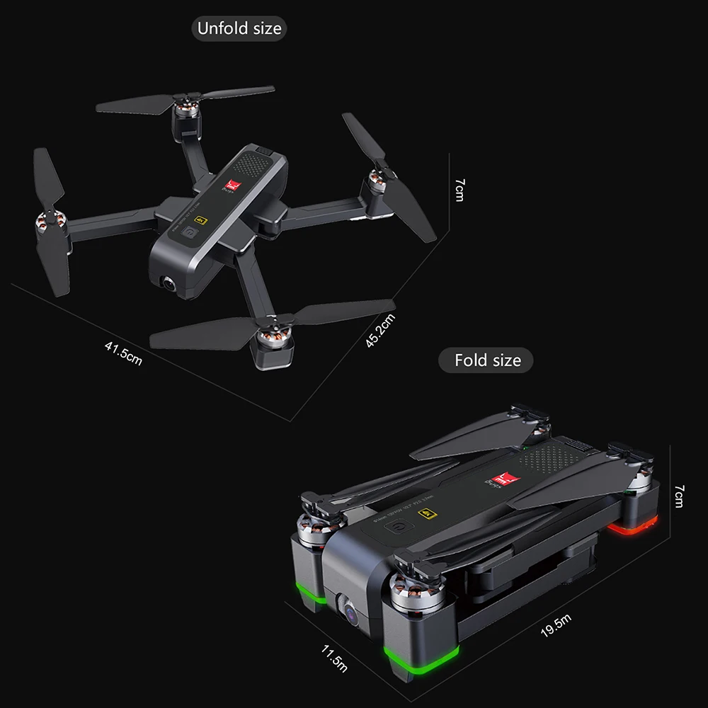 Размер дрона: 20,5x11,5x7,5 см (в разложенном виде)