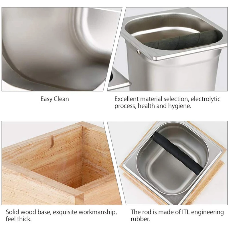 Материал-изготовлен из толстой нержавеющей стали с электролитическим процессом и основой из твердой древесины. Которая обеспечивает хорошую амортизацию и защищает ручку кофемашины. Пищевые материалы, прочные.
