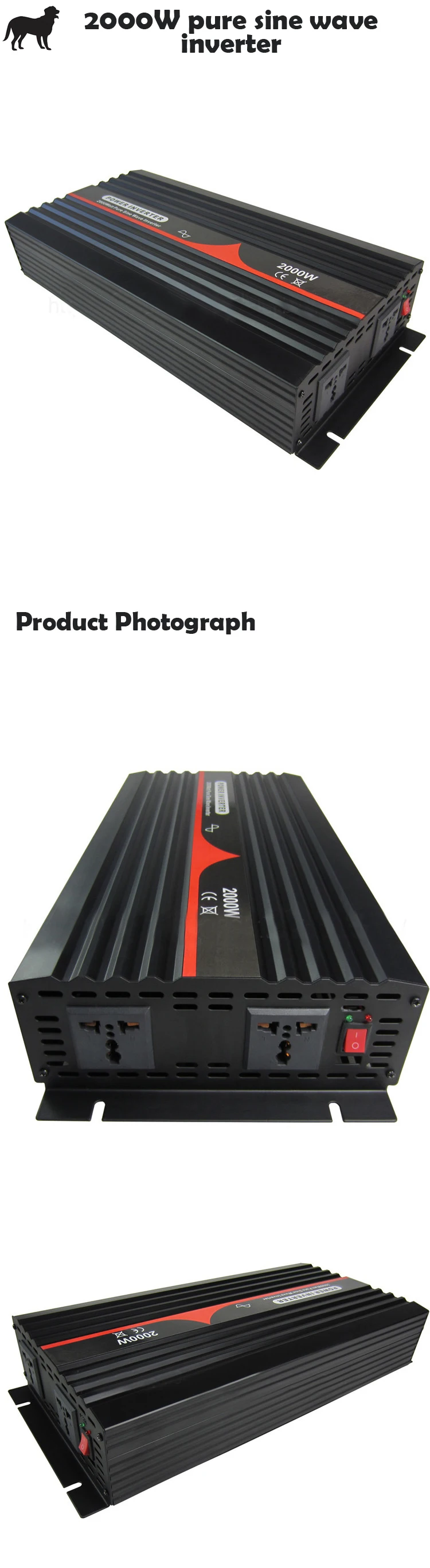Параметры продукта Модель: BERT-P-2000 Входное напряжение постоянного тока: 12V / 24V / 48V Вход Диапазон напряжения: Dc11-15v/22-30 в/44-60 в Ток холостого: <1.8A Эффективность: > 90% Выходное напряжение переменного тока: AC100V / 110V / 120V / 220V / 230V / 240V Номинальная мощность: 2000W Пиковая мощность: 4000W Выход частота: 50 Гц или 60 Гц Выход сигнал: Чистая синусоида Выход гармоническое содержание: <3% Аварийный сигнал низкого давления: Dc10.2-10,8 В/20,4-21,6 в/40,8-43,2 в Понижение низкого напряжения: Dc9.2-9,8 в/18,4-19,6 в/36,8-39,2 в Перегрузка 120% - 130%: Выход выключения Выключение перенапряжения: Dc15-16v/30-32 В/60-64 в Защита от перегрева: Автоматическое отключение питания Предохранитель: Защита от короткого замыкания Рабочая температура: От-10 °C до + 50 °C Рабочая влажность: 10% ~ 90% относительной влажности Температура хранения: От-20 °C до + 50 °C Влажность при хранении: 5% ~ 95% относительной влажности Размер машины: 444*199*73 мм Посылка Размеры: 480*240*140 мм Вес нетто: 5,66 кг Вес брутто: 7,16 кг Способ упаковки: 1 комплект, 1 внутренняя коробка и 1 внешняя коробка Режим запуска: Устройство плавного пуска Режим охлаждения: С контролем температуры вентилятор охлаждения