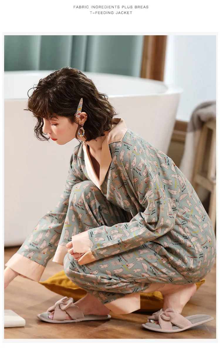 Fdfklak Модальная тонкая одежда для беременных на весну и осень Пижама с длинным
