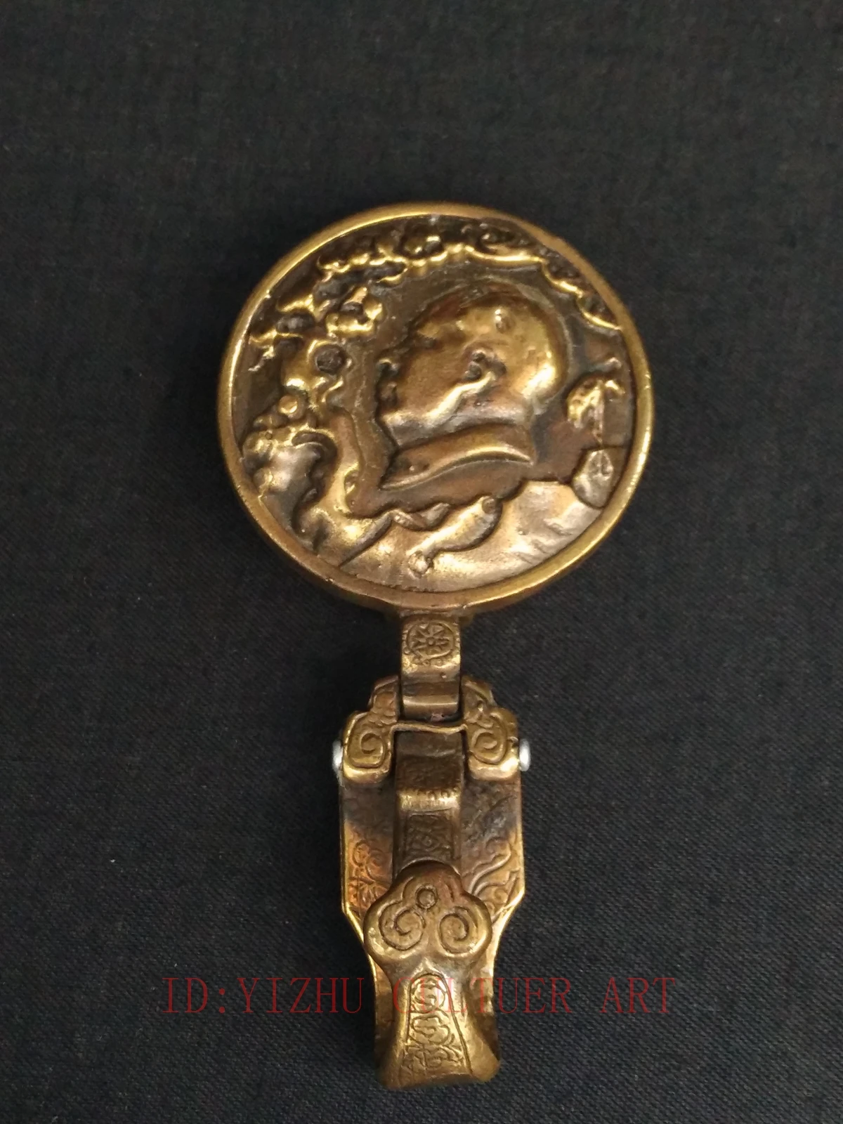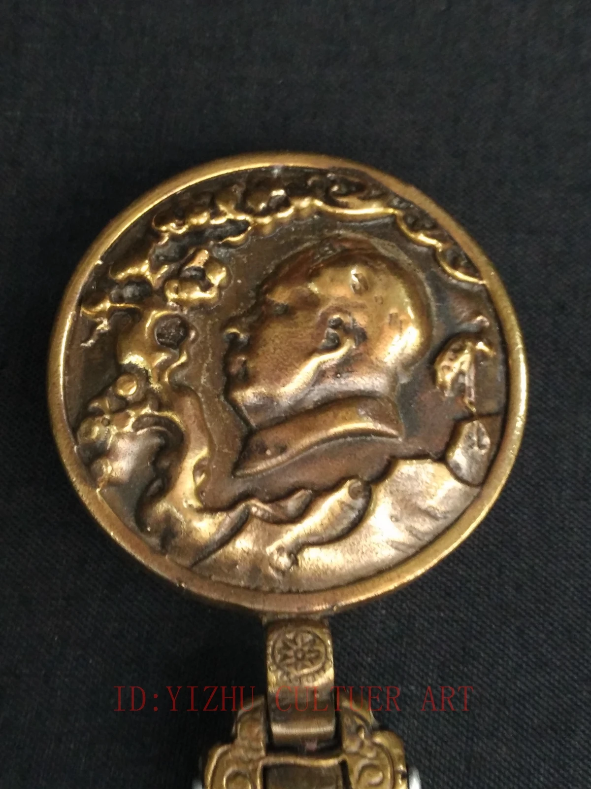 Старый Собранный Китай медь резьба Мао Цзэдун статуя Пряжка ключ или нож украшение