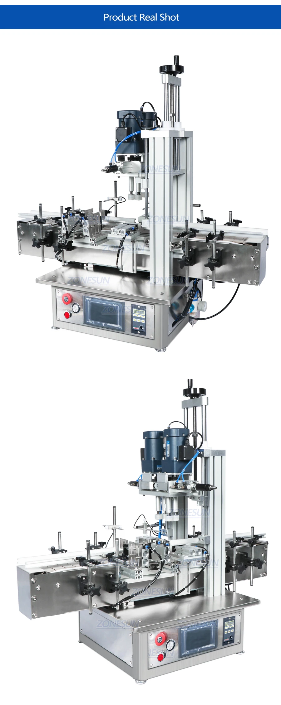 Эта машина используется для автоматической укупорки пластиковых бутылок и стеклянных бутылок в косметике, пищевых продуктах и напитках, пестицидах и удобрениях, химической промышленности, подходит для различных форм крышек бутылок, высокой эффективности производства.Параметр