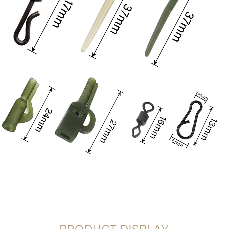 Параметры: Материал: мягкая резина, металл Размер: мульти размер s Количество: 40 шт. Упаковка включает в себя: 10 шт. Пластик зажимами для грузила 10 шт. хвост Резина 10 шт. быстросменных вертлюгов Размеры 8 10 шт Анти-tangel рукава Линзами Назначение: для того, чтобы сделать карпа Rig