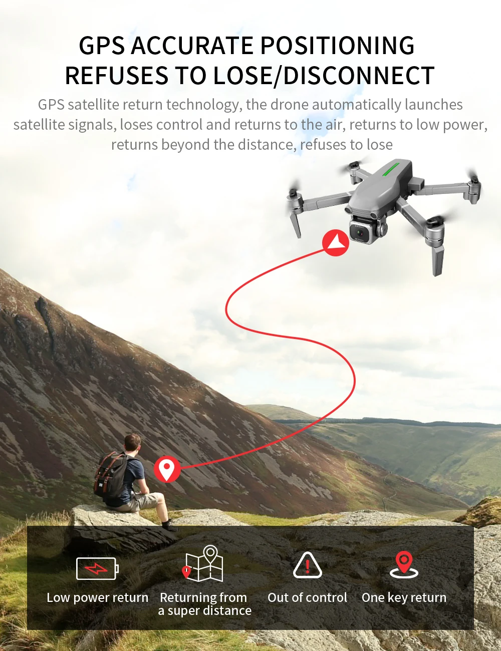 -GPS вспомогательный полет. Предоставляет вам точные детали позиционирования вашего дрона. Дрон автоматически вернется домой точно, когда его батарея Низкая или сигнал слабый, когда вылет из диапазона, никогда не беспокоясь о потере дрона.