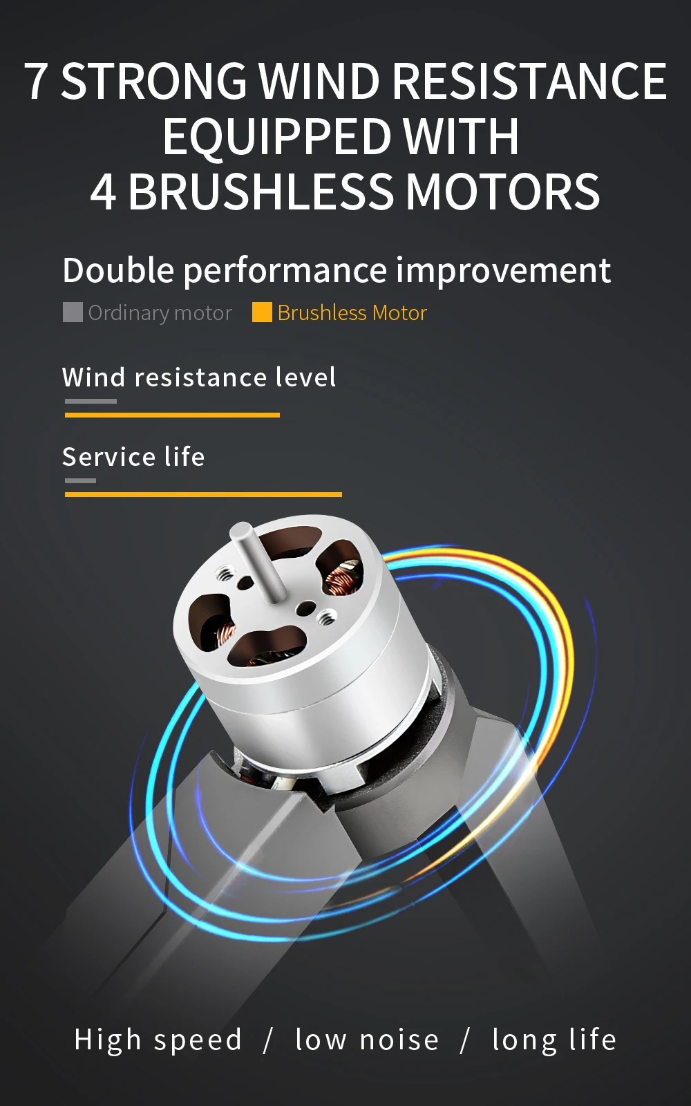 -Бесщеточный двигатель. Он такой тихий, но очень мощный во время бега. Поломка редко происходит, и замена двигателя редко требуется, что делает ваш полет более приятным.