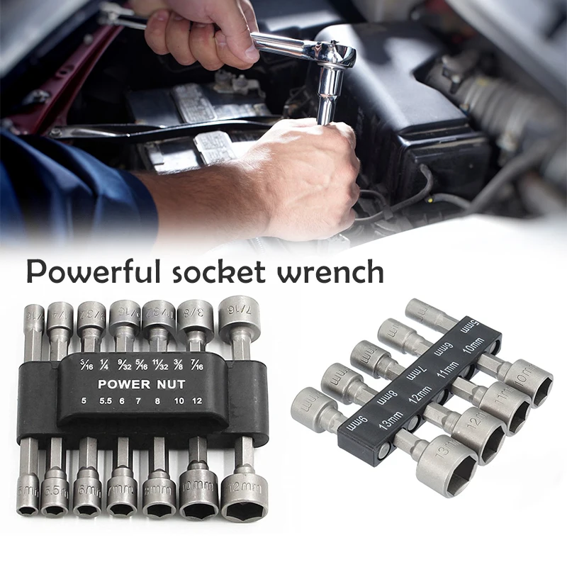 Диаметр гнезда: 3/16 (4,76 мм), 1/4 (6,35 мм), 9/32 (7,14 мм), 5/16 (7,93 мм), 11/32 (8,73 мм), 3/8 (9,53 мм), 7/16 (11,11 мм), 5 мм, 5,5 мм, 6 мм, 7 мм, 8 мм, 10 мм, 12 мм