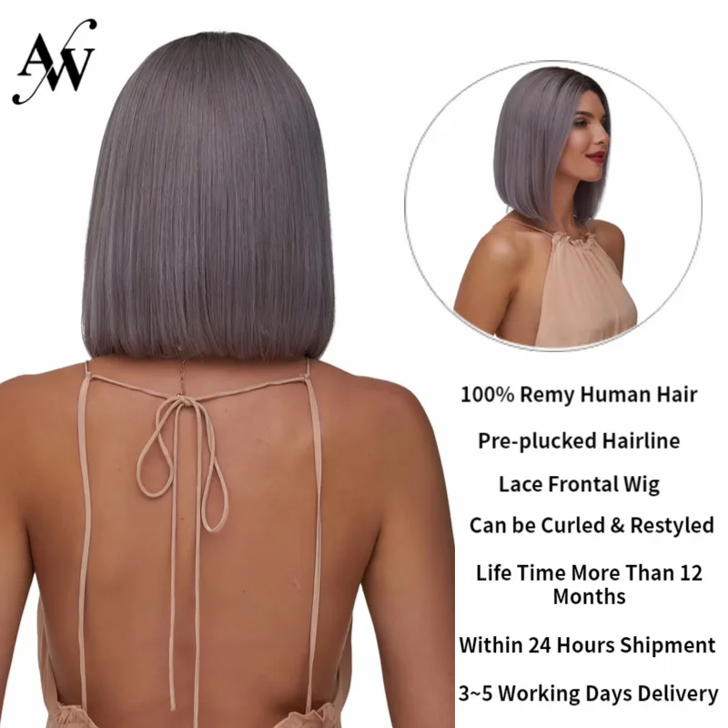 AW 10 ''12'' Серый прямой парик с прозрачным передним кружевом, предварительно отобранный Реми парик для женщин, 150% Плотность