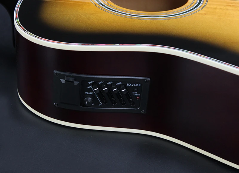 Акустическое гитарное ушко Sunburst 41 дюйм из массива ели с цветочными вставками