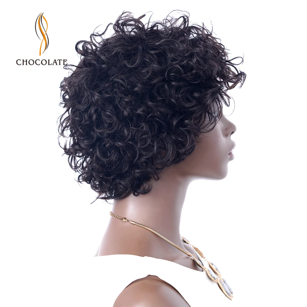 Коричневые короткие вьющиеся Волнистые парики с эффектом омбре человеческие