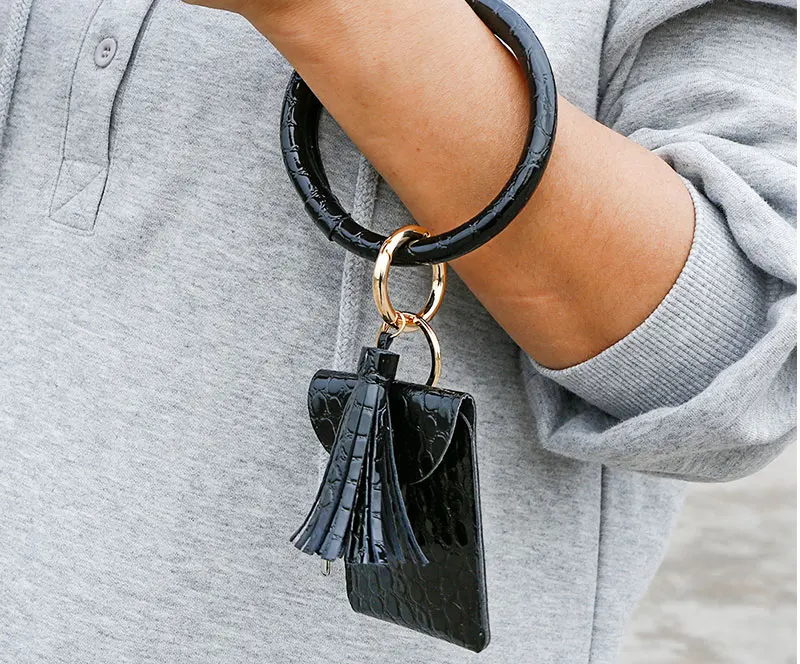 2020 новый стиль держатель для карт кошелек PU кожаный браслет брелок крокодиловый узор кошелек сумка для монет с брелок с кисточками кулон