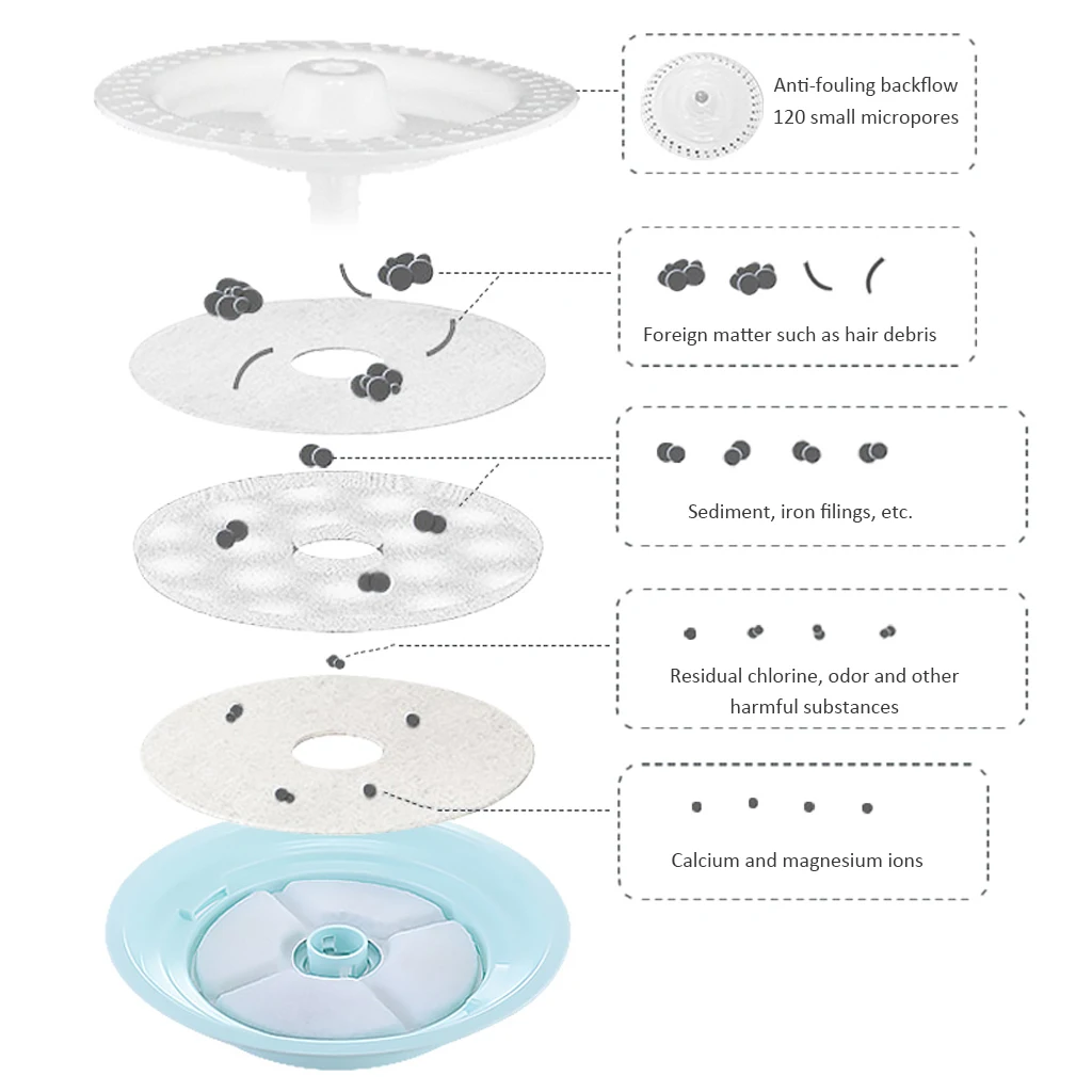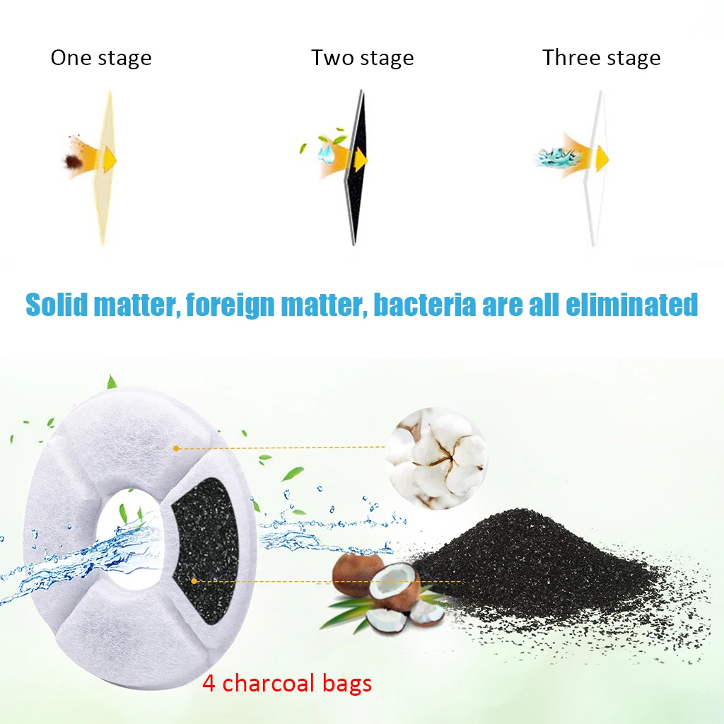 -Фильтр изготовлен из смолы и активированного угля, который помогает удалить хлор, запах и органические загрязнители из воды. -360 градусов окружающий активированный уголь -Запасные фильтры для фонтанов, совместимые с фонтанами для домашних животных. -Фильтруйте волосы и остатки, удаляйте запахи и смягчайте воду, улучшая дегустацию воды. -Подтвержденное качество воды может быть удалено тремя типами фильтрации (смола, уголь, фильтрованная хлопковая ткань). Внешний слой каждого фильтра фильтрует примеси и мусор.