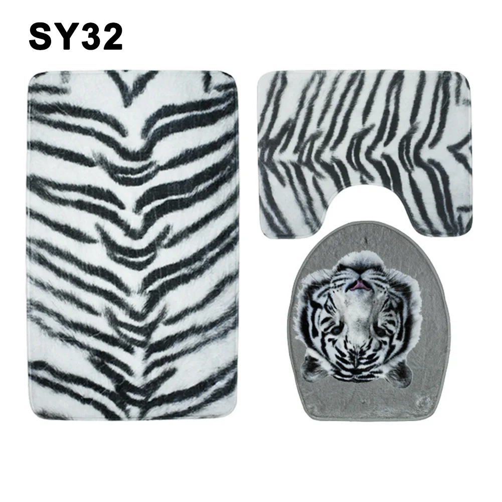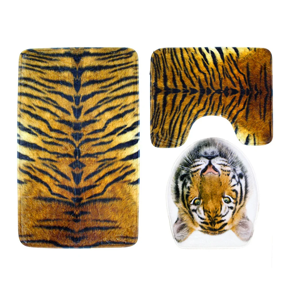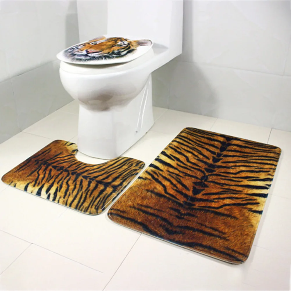 3 шт. коврик для ванной комнаты с принтом тигра, напольный коврик для ванной, крышка для унитаза, u-образная накладка, набор