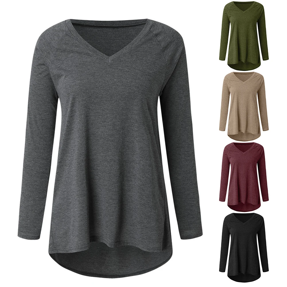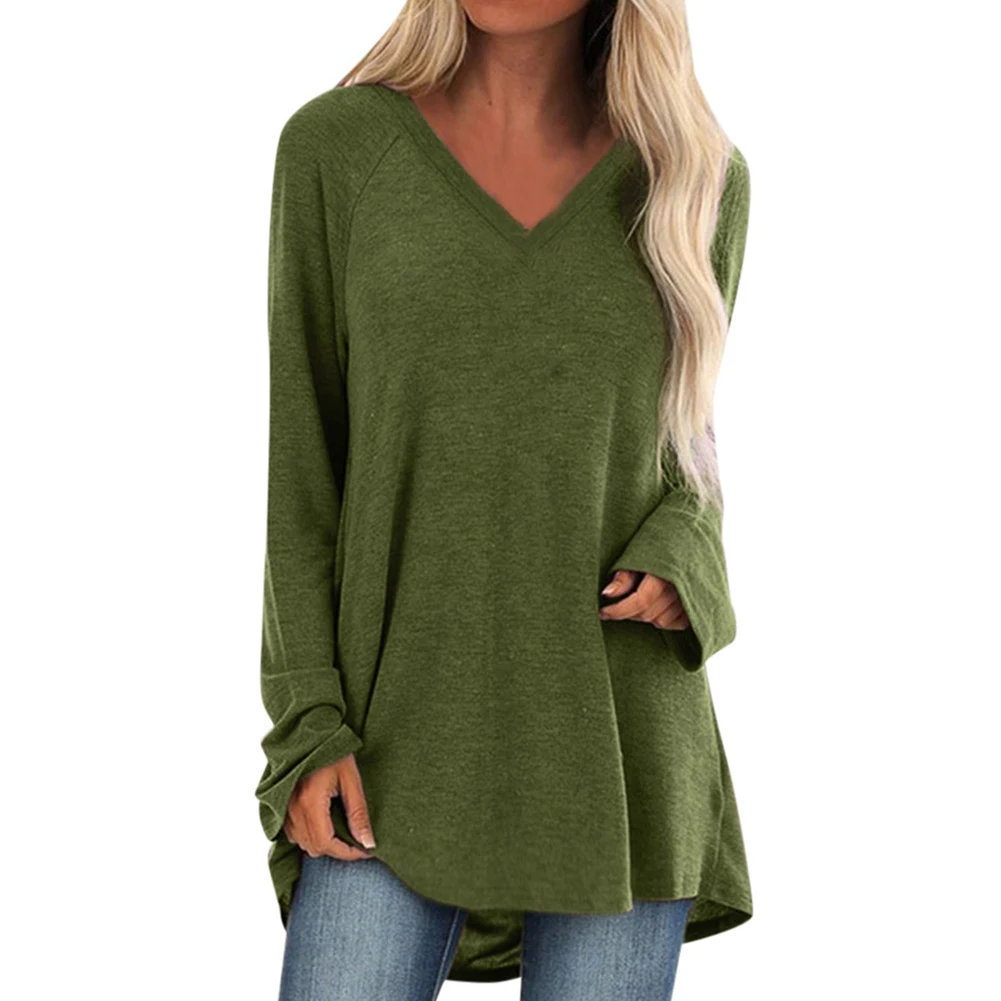 Женский Однотонный пуловер с длинным рукавом и v-образным вырезом размера плюс, свободная блузка миди-топ