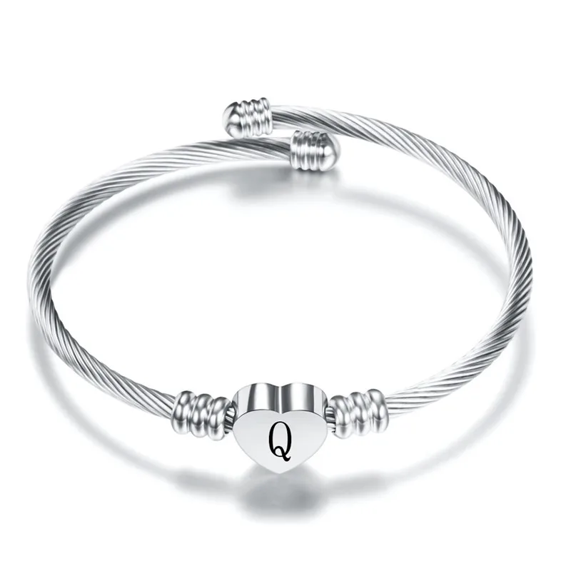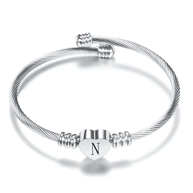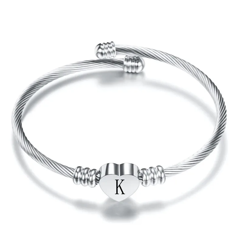 Регулируемый браслет из нержавеющей стали золотого и серебряного цвета с сердечками и буквами, модный браслет с буквами алфавита для женщин