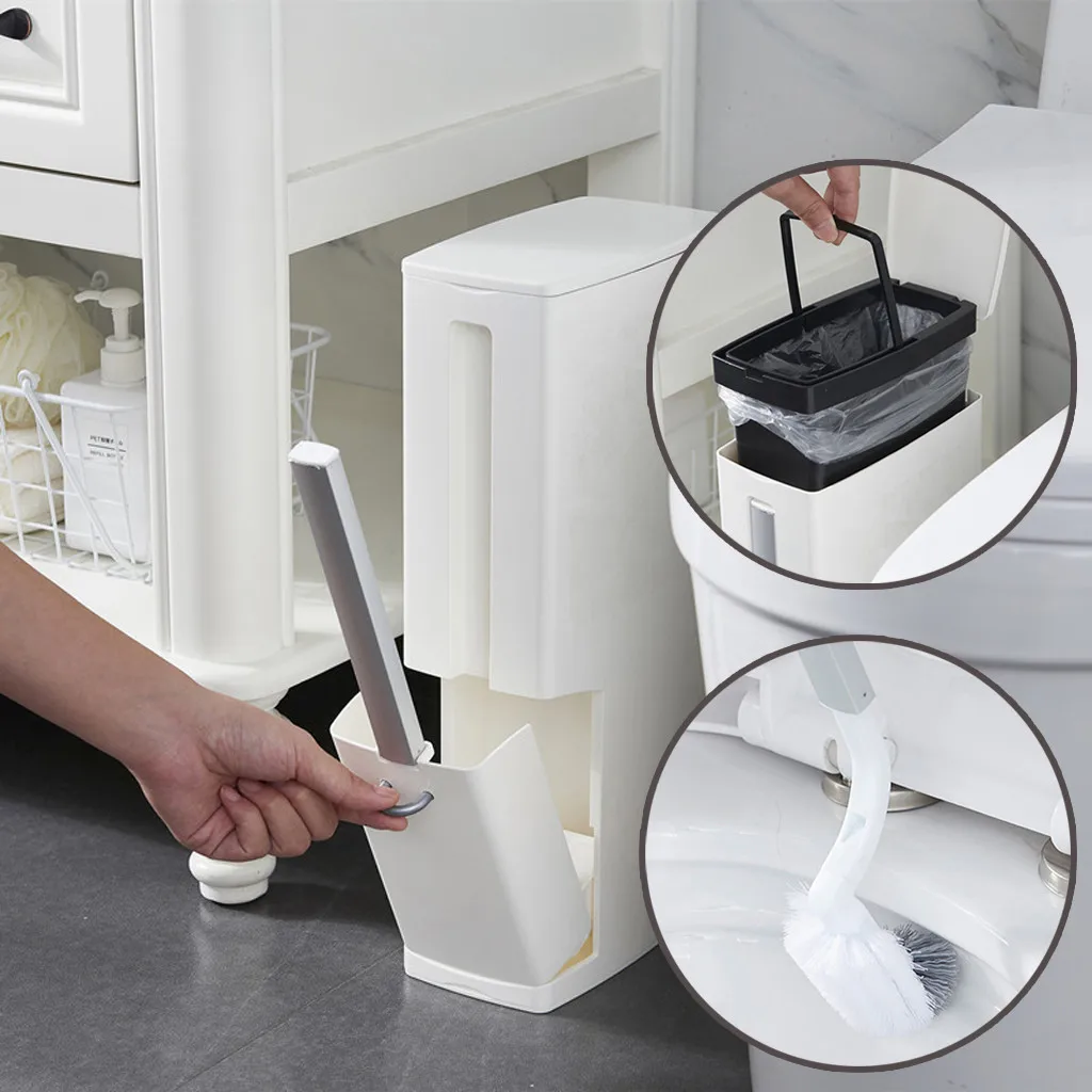Ванная комната тонкий пластиковый мусорный бак, мусорный бак с держателем для туалетной щетки, мусорный бак