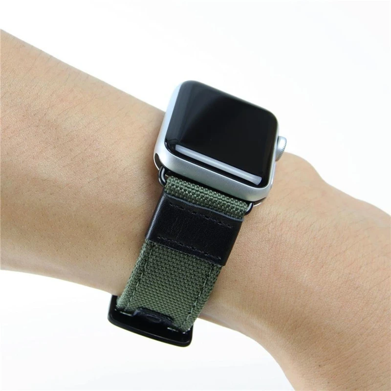 1. Совместимость: Apple Watch/Sport/Editon 38 мм 42 мм Serise 5 4 3 2 1 все модели 2. Материал кожаного ремешка: высококачественный нейлоновый материал 3. Стиль: Мода для мужчин и женщин Apple Watch Band 4. Регулируемый: Да, можно легко регулировать длину по размеру запястья