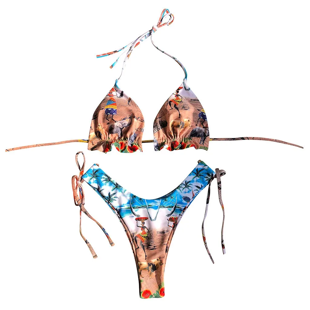 Женский купальник в радужную полоску, купальник бикини бандаж, танкини, пляжный