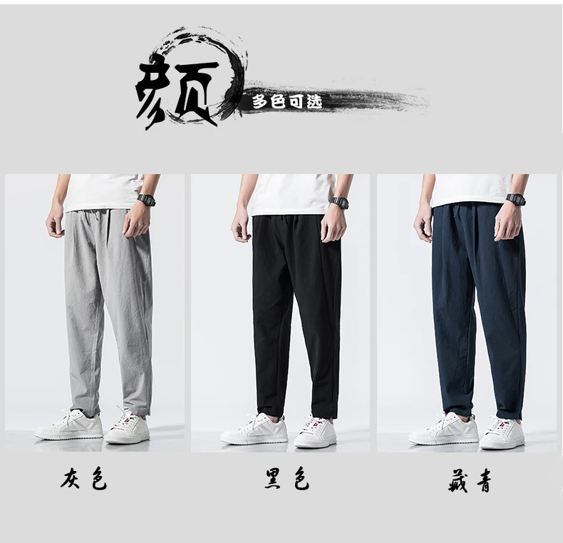 Хлопковые льняные шаровары, Мужские штаны для бега