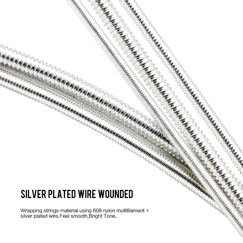 Особенности: Серебристая оболочка провода. Высококачественный нейлон + 3% полиэстер. Сильная Герметичность обеспечивает отличный резонанс, нормальное и жесткое Натяжение на выбор. Хорошее ощущение, долгий срок службы, полный тон. Струны серии ORPHEE-NX отличаются высокой прочностью, четкостью и комфортом. Характеристики: Модель: NX35, NX36 Высококачественный нейлон + 3% полиэстер Прозрачный нейлон Нейлоновый сердечник Посеребренная Медная рана Посылка: цветной пластиковый пакет Внутренняя посылка: серебристый/красный полиэтиленовый пакет Размер: NX35-жесткий удлинитель E-lst Прозрачный нейлон: 028 (0,71 мм) B-2nd Прозрачный нейлон: 032 (0,81 мм) G-3rd Прозрачный нейлон: 040 (1,02 мм) D-4th Посеребренная Медная рана: 030 (0,76 мм) A-5th Посеребренная Медная рана: 036 (0,91 мм) E-6th Посеребренная Медная рана: 045 (1,14 мм) NX36-нормальное удлинение E-lst Прозрачный нейлон: 028 (0,71 мм) B-2nd Прозрачный нейлон: 032 (0,81 мм) G-3rd Прозрачный нейлон: 040 (1,02 мм) D-4th Посеребренная Медная рана: 030 (0,76 мм) A-5th Посеребренная Медная рана: 035 (0,89 мм) E-6th Посеребренная Медная рана: 043 (1,09 мм)