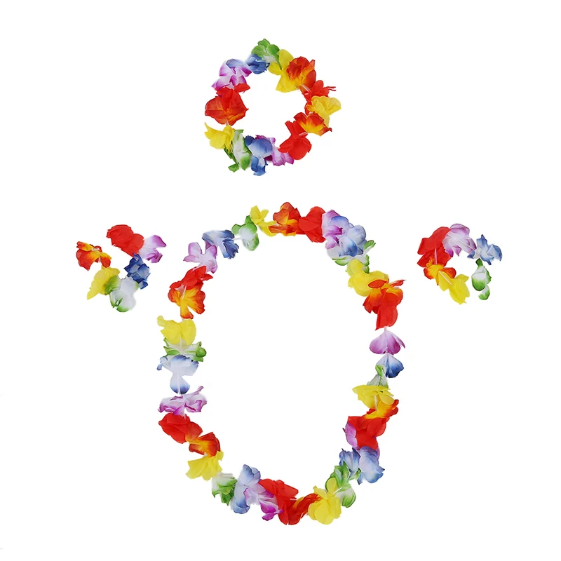 2x leis Цветочные эластичные браслеты на запястье, пара цветочных бюстгальтеров (11,5 см в диаметре),1 ожерелье с цветами Leis