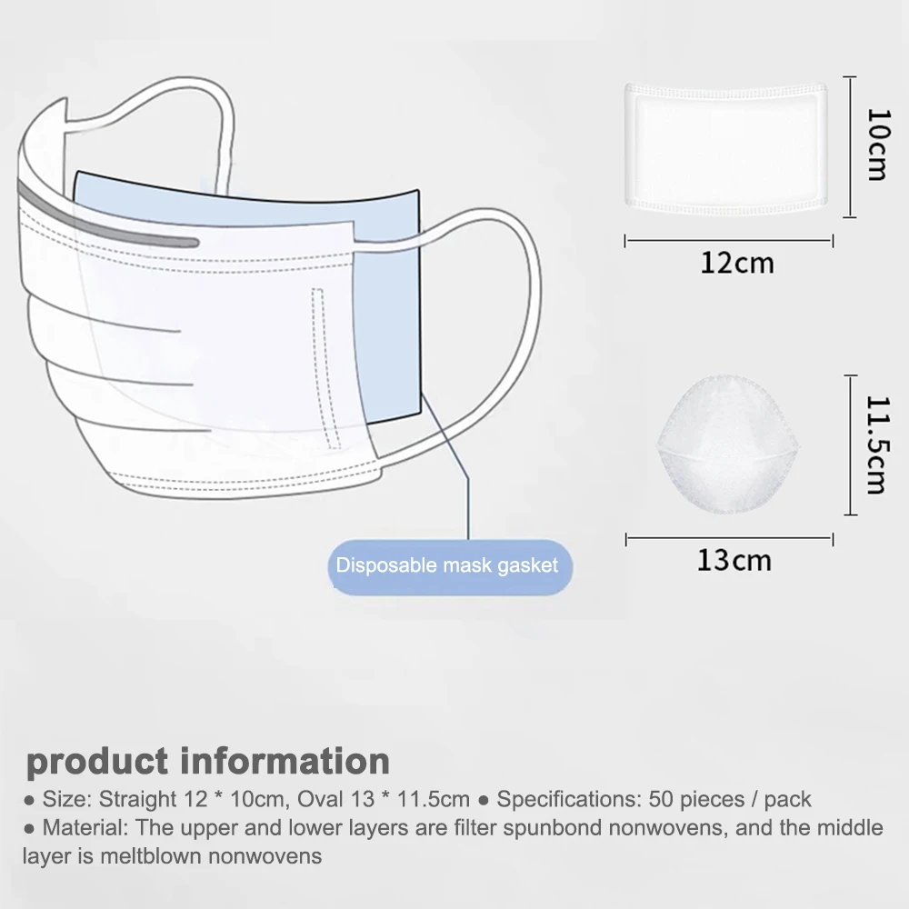 Одноразовые маски для лица прокладка: один раз использования; держать внутреннюю часть маски чистой; продлить время использования маски; дышащий комфорт