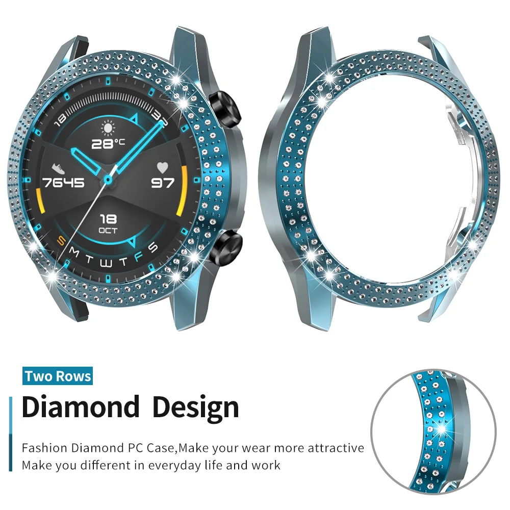 Новый дизайн, двухрядный Алмазный бампер из поликарбоната для Huawei Watch GT 2 1 46 мм, Модный чехол GT2, легкая тонкая пластиковая оболочка, аксессуары
