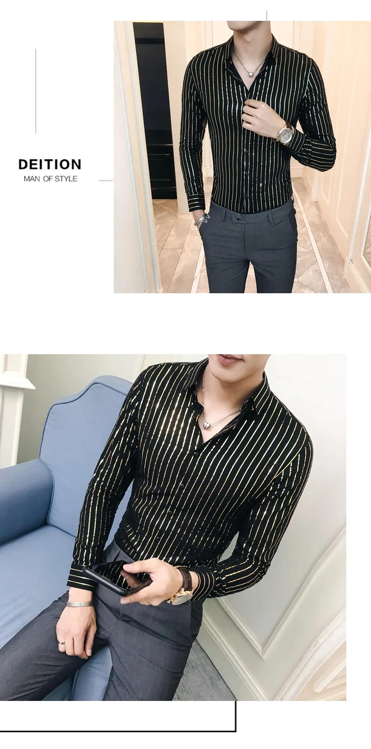 Весенняя мужская полосатая рубашка с длинным рукавом
