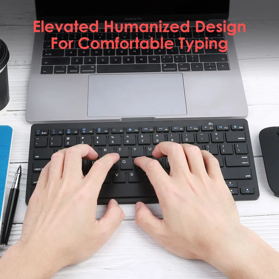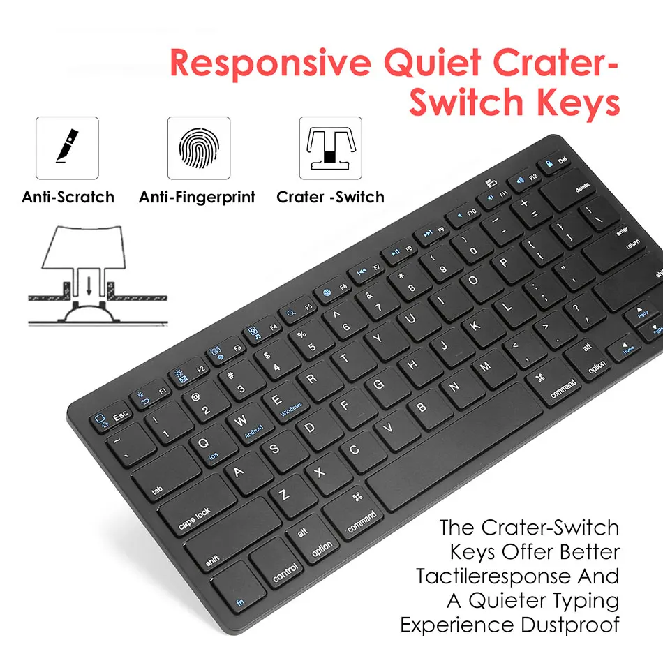 • Эта ультратонкая клавиатура имеет идеальный размер и идеально подходит для ношения на ходу. Эти низкопрофильные клавиши похожи на клавиатуру ноутбука, поэтому легко и естественно просто прыгать прямо и начать использование.