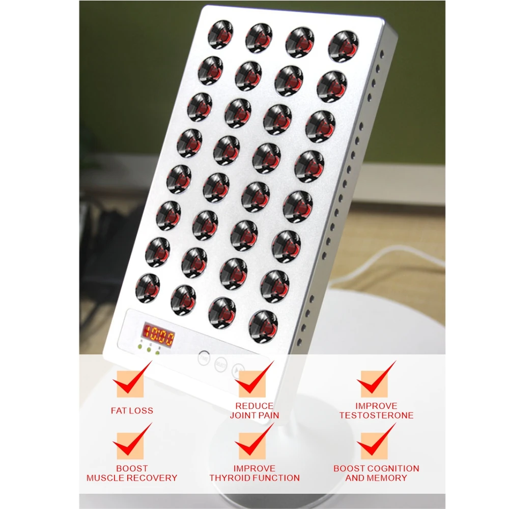 1) 32pcs 3w светодиодный чип 2) Входное напряжение: 100-240 В переменного тока 3) Частота: 50/60 Гц 4) Объектив: 30 ° 60 ° 5) светильник denisty: >70 мВт/см2 6) Размеры: 226*125*20 мм 7) спектр: 850:660 или по индивидуальному заказу 8) Цифровая вставка таймера, макс. 20 минут. 9) посылка включает в себя: 1 светильник, 1 подставка, 1 провод с разъемом 10) Общий вес: 2 кг/шт. 11) Алюминиевый корпус
