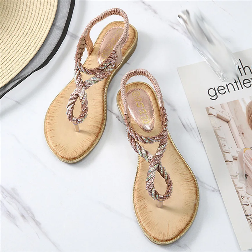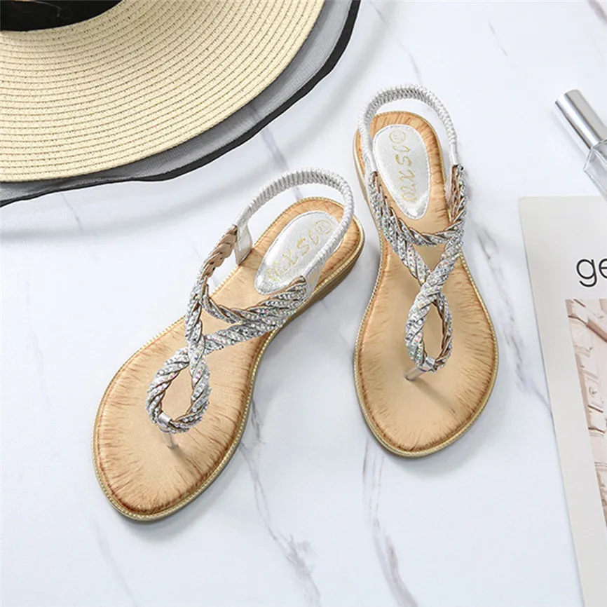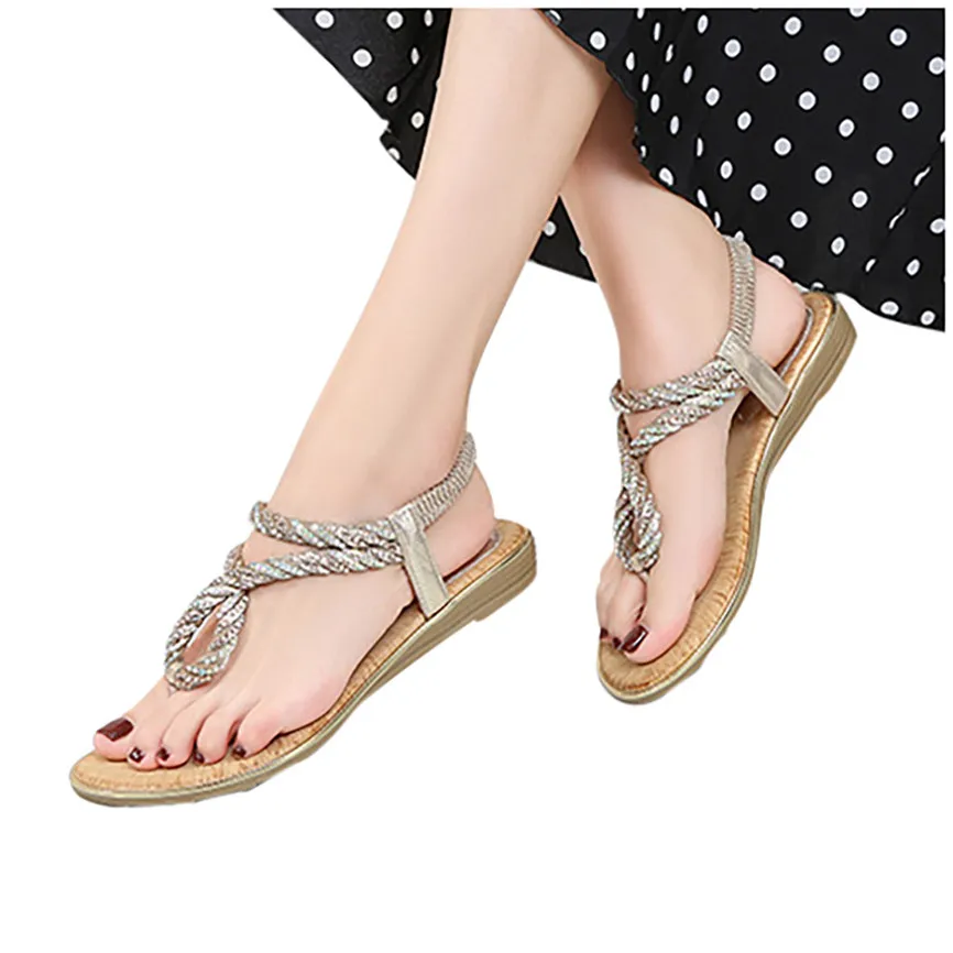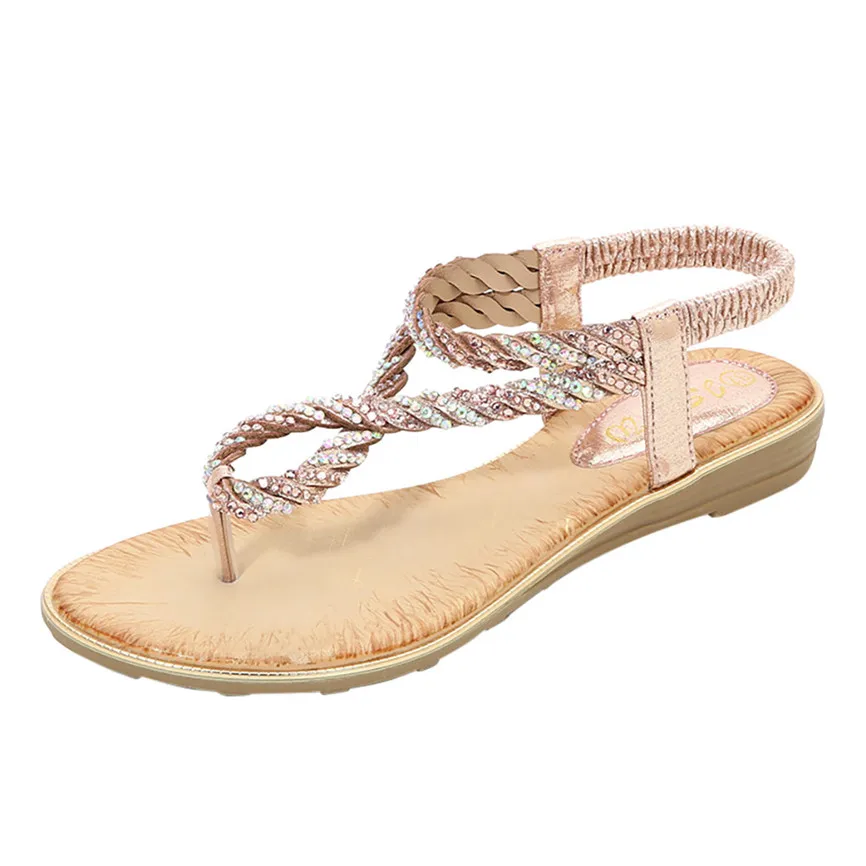 Женская обувь со стразами; Повседневная обувь на танкетке с эластичным ремешком; Пляжная обувь в богемном стиле; Сандалии