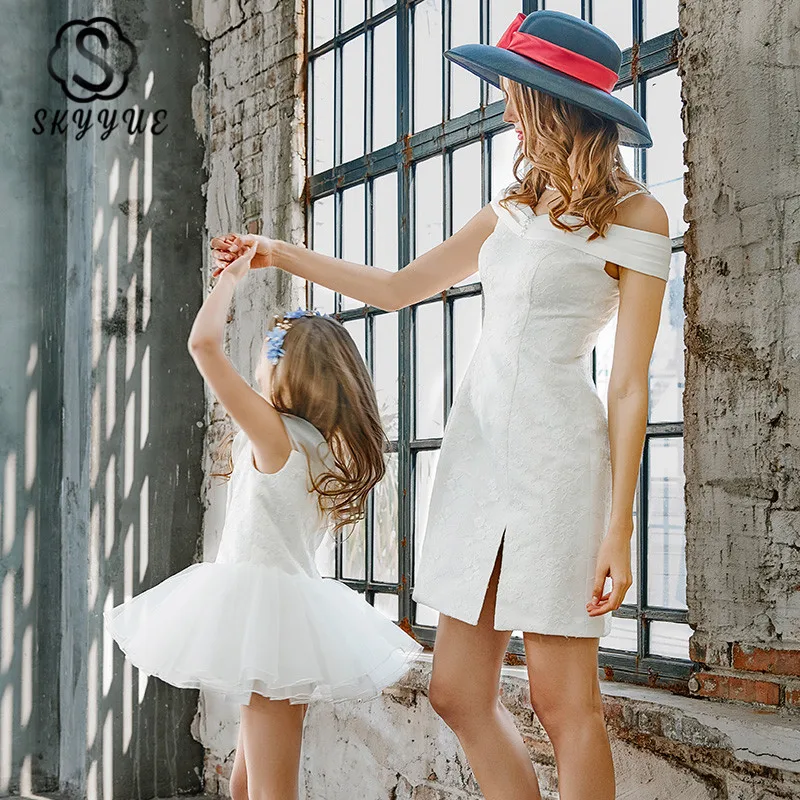 Skyyue/элегантное платье для выпускного вечера с открытыми плечами; Розовое торжественное платье трапециевидной формы для мамы и дочки; Одежда для родителей и детей; FB149