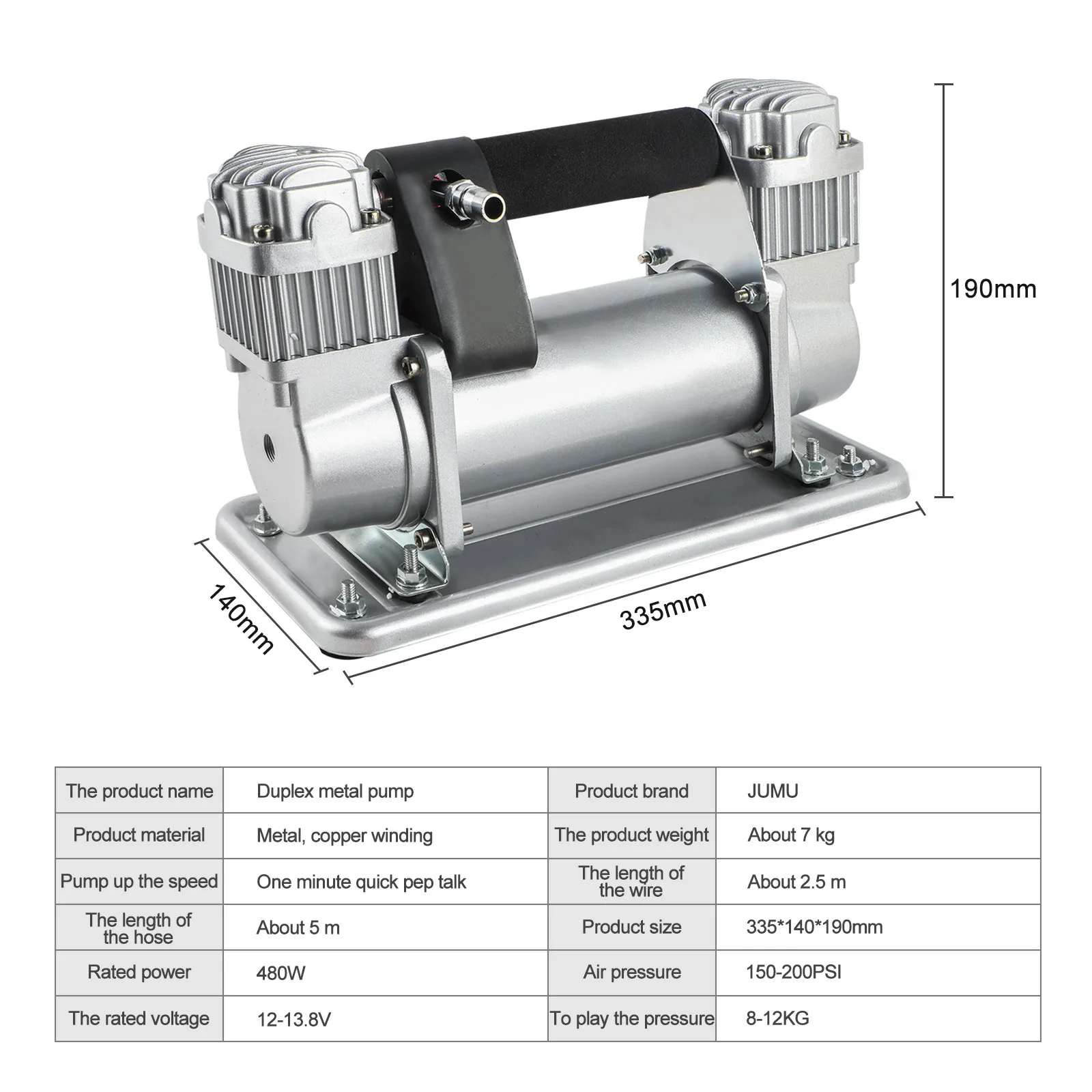 Высокое качество -- надувной корпус насоса из металлического материала, Быстрое рассеивание тепла, металл, устойчивость к высоким температурам и давлению, морозостойкость (может работать нормально до-40 градусов), гарантия работы по бездорожью.