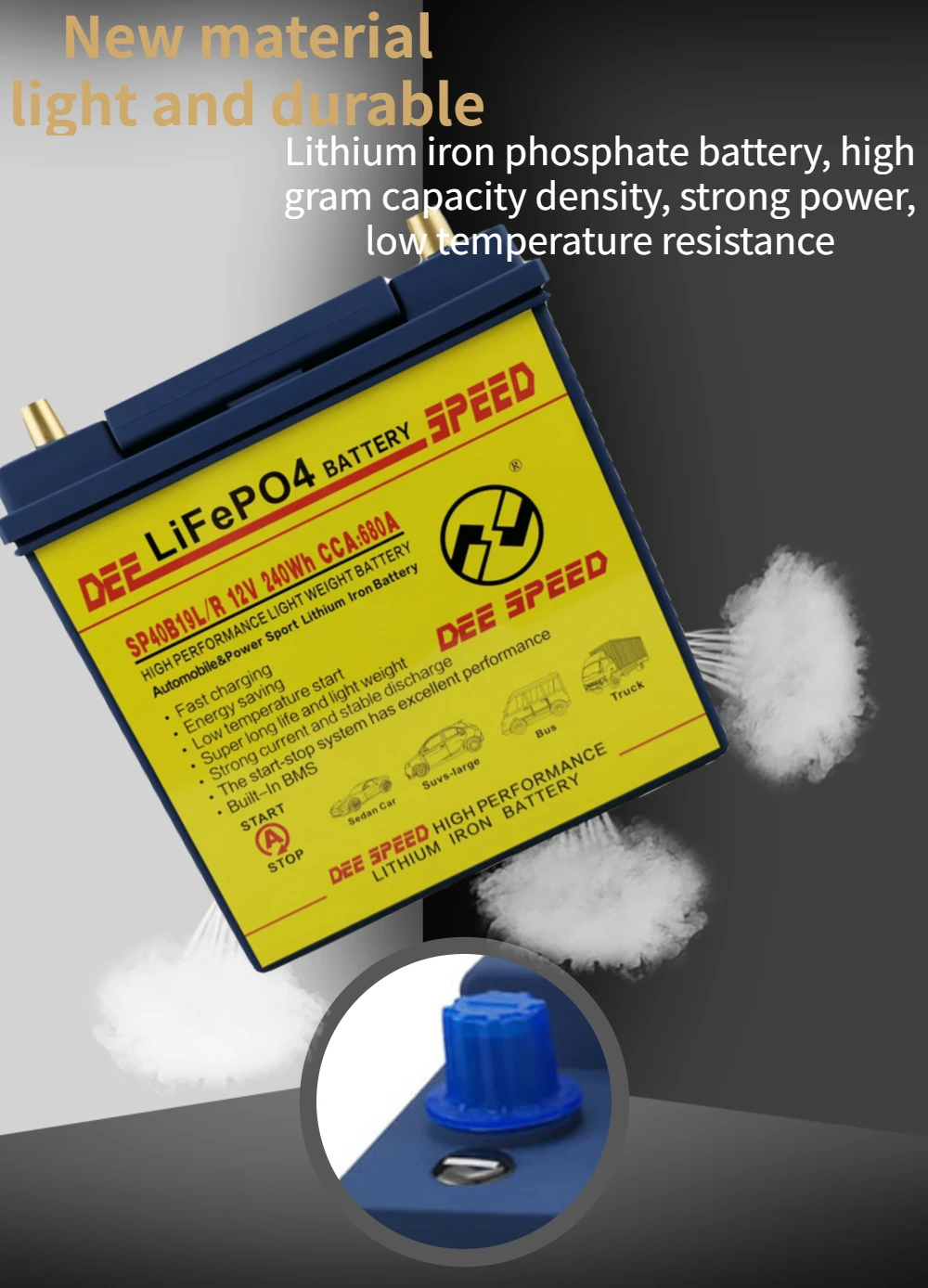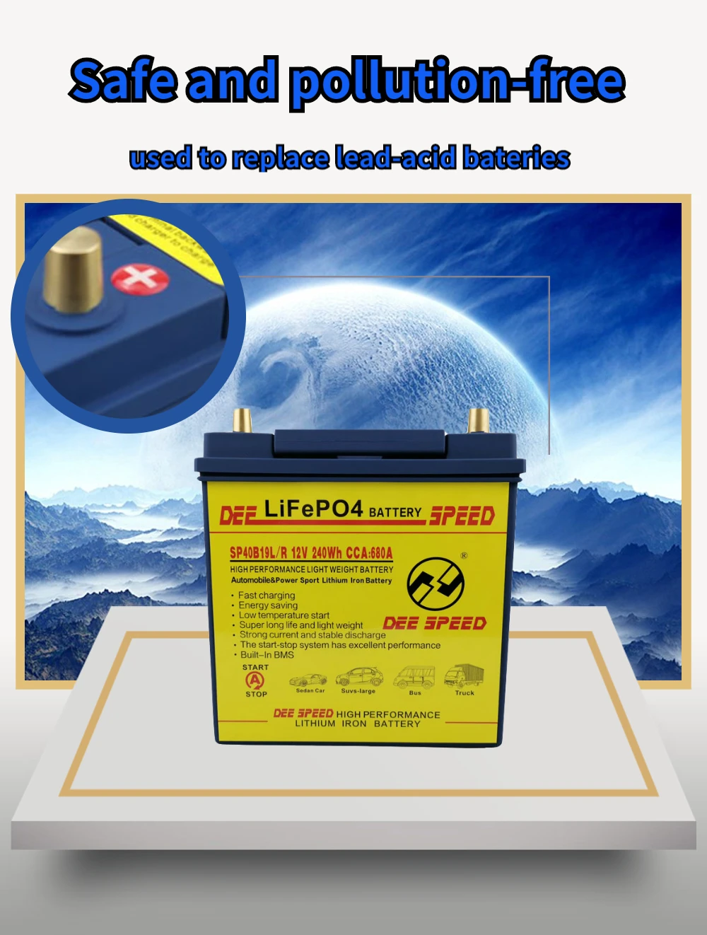 Преимущества товара: Легко носить с собой, светильник вес, высокая емкость, высокая быстросъемной площадки, длительное время работы, длительный срок службы, Безопасность и защита окружающей среды Он имеет отличную безопасность и высокую эффективность и стабильность производительности, чем традиционные свинцово-кислотные батареи Светильник вес: это только в том случае, 1/3 раз светильник er, чем свинцово-кислотных аккумуляторных батарей. Низкий уровень саморазряда: он может храниться более 1 года (и нормальная свинцовая кислота может храниться только менее 6 месяцев). Отсутствие загрязнения: он не содержит каких-либо опасных материалов, таких как тяжелые металлы, кислоты или любые провода и т. Д. Отличная большая производительность зарядки: он может принимать ток зарядки 10C и 90% будет заряжаться за 6 минут. Экономия топлива: Увеличение напряжения зажигания, повышение эффективности свечи зажигания, так что это может сэкономить топливо для ваших автомобилей. Длительный срок службы: как правило, срок службы нашей батареи может достигать более 2000 раз с емкостью 80% (свинцово-кислотная батарея noral имеет срок службы всего в 300 раз). Внимание: перед установкой проверьте правильность выпрямителя. Применение: Электрическая машина, ксеноновая лампа/прожектор, инвертор, портативные устройства, оборудование для беспроводной связи, контрольное оборудование, силовое оборудование, медицинские инструменты, рельефное оборудование, аварийное освещение/светодиодные лампы, дорожные знаки, портативная маленькая бытовая техника, электрические инструменты, автомобильное и промышленное оборудование резервного питания Безопасность меры предосторожности 1. Не бросайте батарею в воду или не мочите 2. Держите батарею подальше от источника тепла 3. Не бросайте батарею в огонь или не нагревайте батарею 4. Не позволяйте молотить, чтобы затоптать батарею 5. Не допускайте разборки батареи в любом случае