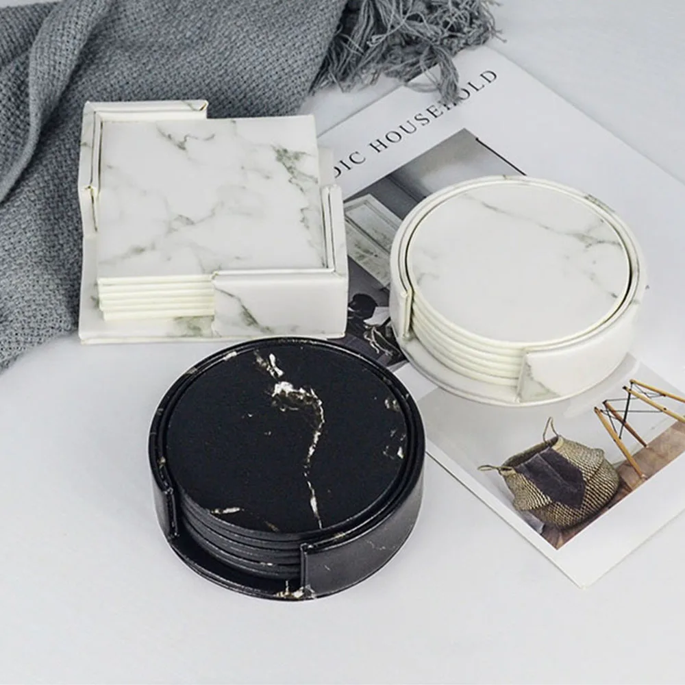6 в 1 Набор из искусственной кожи Мраморная Подставка для стаканов напиток кофе чашка коврик для чая обеденный стол теплоизоляционные салфетки шикарное Украшение Рабочего Стола