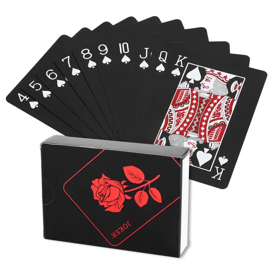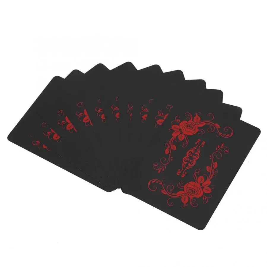 Plastic Waterproof Rose Plated Black Poker Cards Deck Magic Playing Card