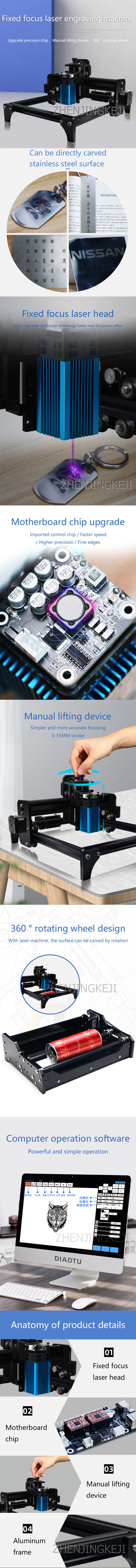 Модель: DT1 Вес: 3 кг Размеры: 29*38*25 см Входное напряжение: 100-240 В Выходное напряжение: 12 В Площадь Резьбы: 19*24 см Мощность лазерной головки: 7000 МВт (милливатт) Материал изделия: алюминиевый сплав + акриловый материал Поддерживаемые форматы: JPG / BMP / DXF Поддерживаемые языки: китайский, английский, немецкий и т. Д. Система поддержки: Windows 7 / 8/10