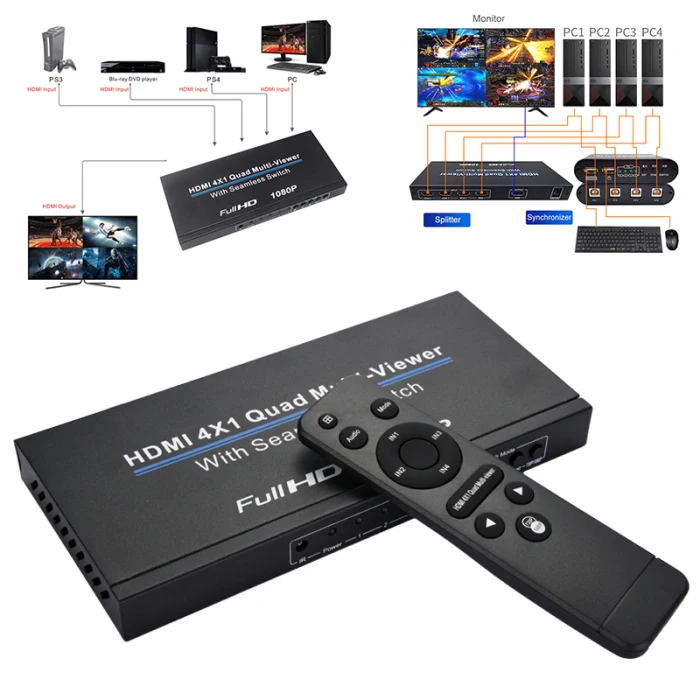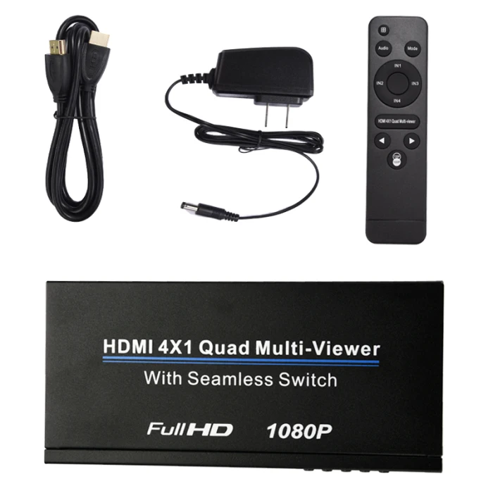 HDMI 4x1 Quad мульти-просмотра:HDMI 1080P @ 60 Гц, 3D, HDMI 1,4 совместим с несколькими разрешениями, поддерживает HDMI 1.3a. HDCP1.2, вход совместим с версией DV1.0. Формат аудиовыхода совместим с PCM2.0