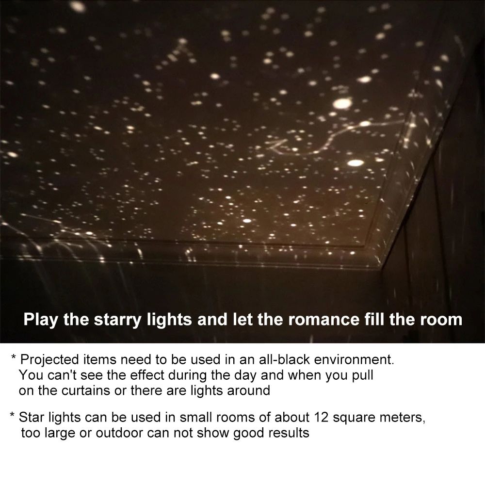 Пусть ваша Ночная Дата наполнена романтикой, теплом и фантазией, этот светодиодный проектор может создать мечтательное звездное небо, романтическую среду и атмосферу полного погружения в любых темных случаях. Уставший после работы, Выключите весь свет и наслаждайтесь фантастическим частным миром и отдыхайте в спокойную ночь самостоятельно или со своей женой/девушкой, чтобы насладиться этой сказочной ночной датой. Кроме того, это хороший подарок для детей, чтобы помочь развить свое воображение и создать блестящее детство для них.