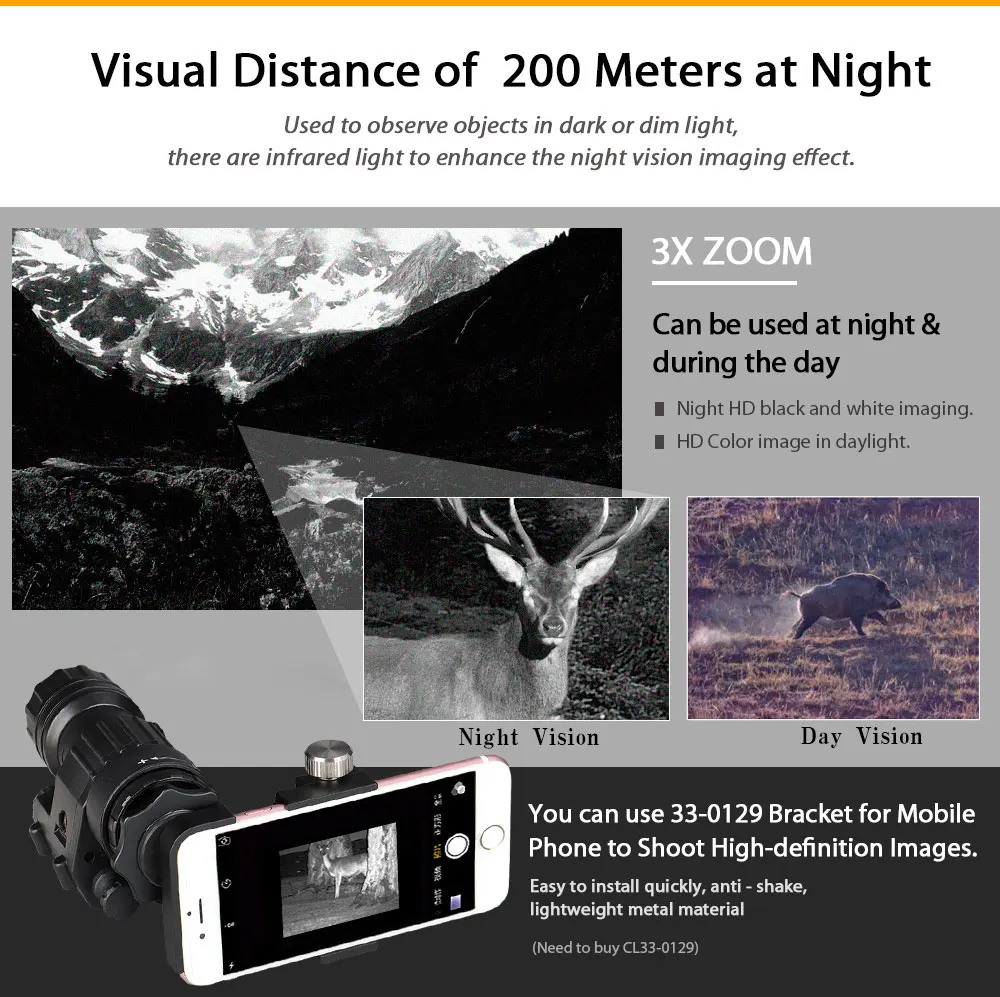2. Самая длинная дальность наблюдения в ночное время составляет более 200 метров.