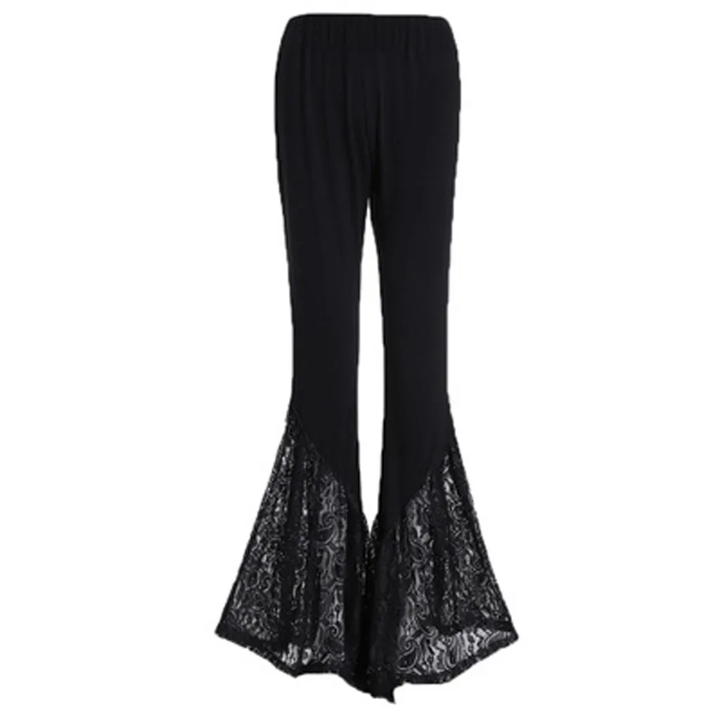 Модные Женские однотонные кружевные расклешенные повседневные брюки с высокой талией на весну