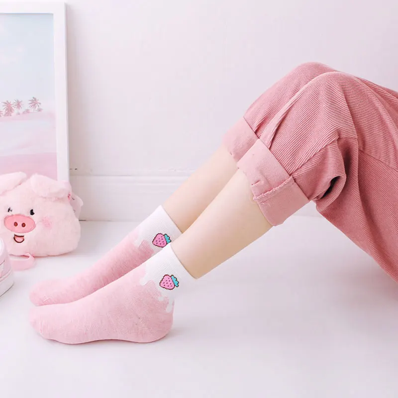 Милые Носки с рисунком фруктов, клубники, арбуза, корейские кавайные носки