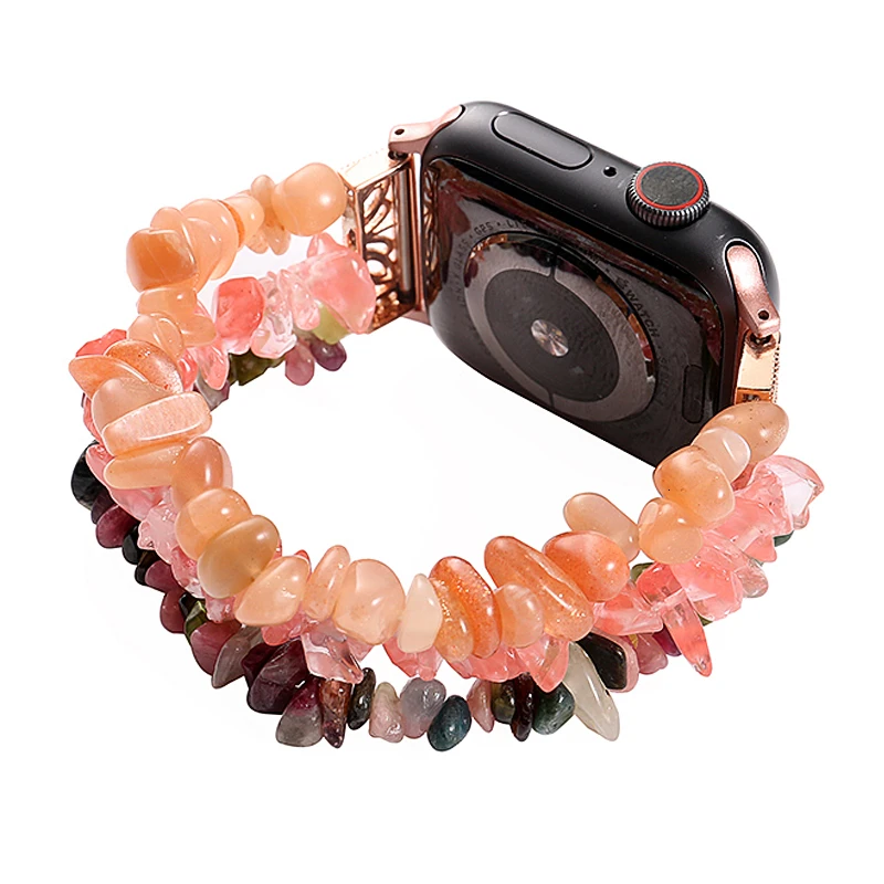 Модный и элегантный дизайн:Этот красивый, стильный, нарядный, удобный браслет с бусинами для Apple watch предназначен для изменения скучного браслета для Apple Watch, чтобы красивые ювелирные изделия и элегантный вид. Подарите вам комфортное ношение и получите много комплиментов во многих случаях, таких как вечерние, свадебные, рабочие или повседневные носки.
